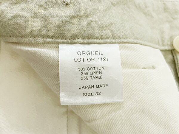 オルゲイユ ORGUEIL トラウザーズ OR-1121 Cotton Linen Trousers コットンリネン テーパード シワ加工 スラックス ツータック ナットボタン アメカジ メンズ ヴィンテージ 日本製 2025年 新作