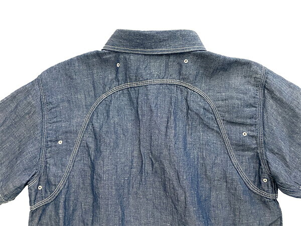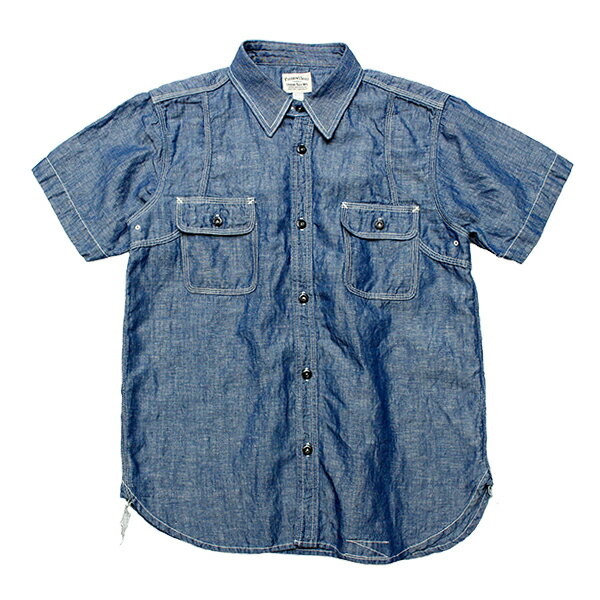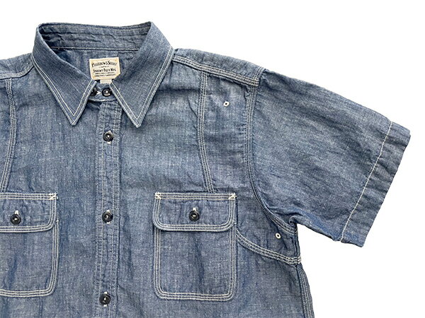 フェローズ Pherrow's ワークシャツ 770WSS シャツ 半袖 40年代モデル ラウンドヨーク WORK SHIRTS コットン シャンブレー リネン チンストラップ 人気 定番 ヴィンテージ アメカジ メンズ 2025年 春夏 サックス ホワイト