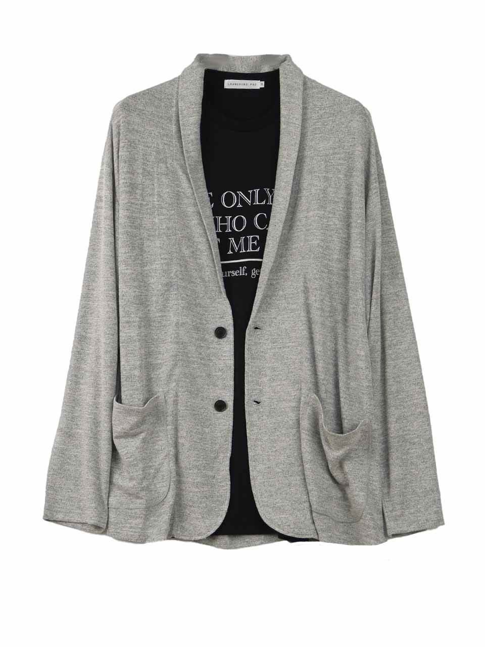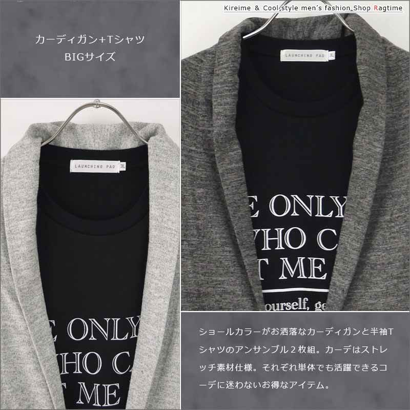 カーディガン 大きいサイズ メンズ Tシャツ アンサンブル 2枚組 ショールカラー ロゴプリント C050810-03