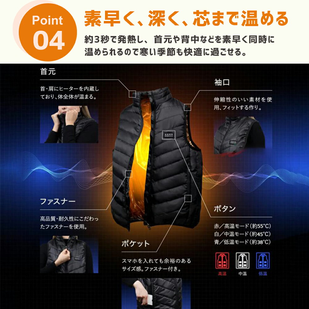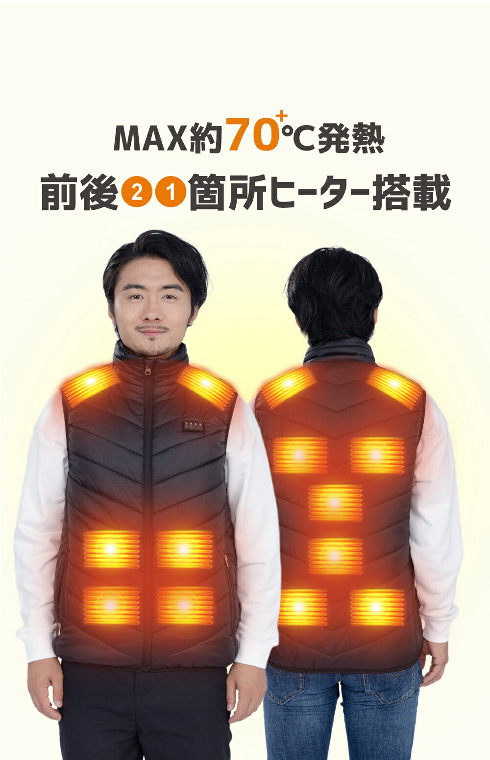 【21エリア発熱】電熱ベスト 充電式 繊維ヒーター 20000mAh バッテリー メンズ レディース ヒーターベスト 電熱ジャケット 電熱服 発熱ベスト 速暖 1年保証 USB給電 電熱ウェア おしゃれ 秋冬用 大きい サイズ 2024