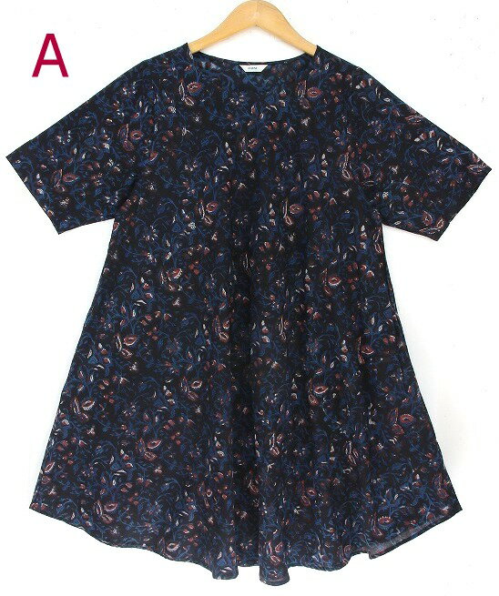 【メール便送料無料】インド綿 ブロックプリント チュニック Aライン 藍染め 涼しい ゆったり