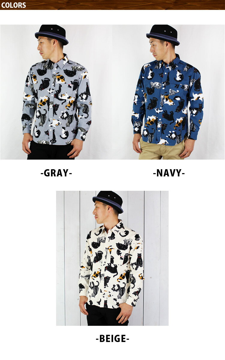 猫柄 シャツ メンズ 日本製 長袖シャツ メンズ 長袖 シャツ おしゃれ 国産 シャツ メンズ トップス カジュアルシャツ ロングスリーブ 長袖 コットン 綿 黒猫 三毛猫 キジトラ ねこ かわいい 猫 シャツ ネコ柄シャツ 派手柄 ねこ柄 総柄 柄シャツ メンズファッション 春 秋