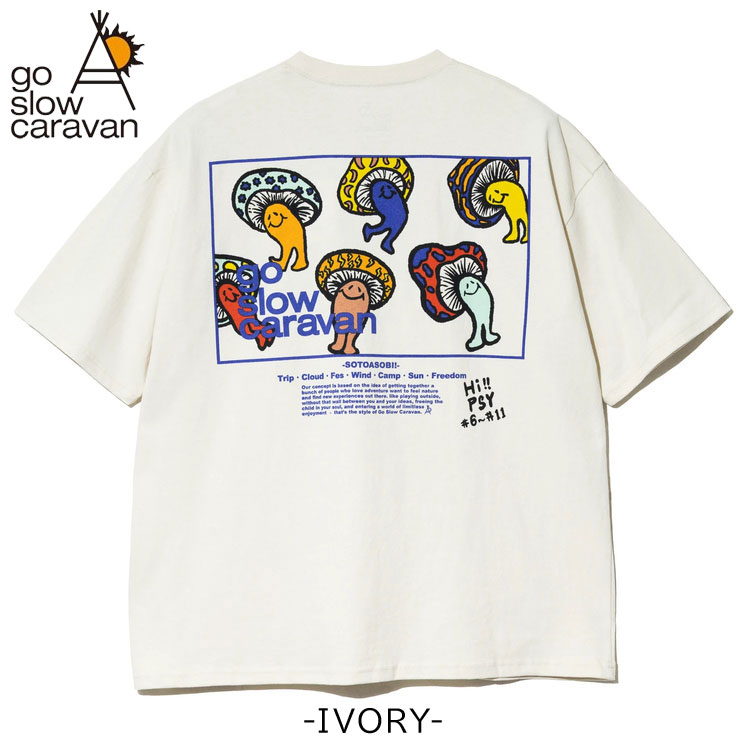 ゴースローキャラバン ゆったり メンズ 半袖 Tシャツ バックプリント スクエアLOGO go slow caravan USA/C ビッグTEE レディース クルーネック 半袖Tシャツ 綿100% 猫 タコウインナー ユニセックス トップス デイリーウェア 外遊び アウトドア キャンプ フェス プレゼント