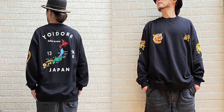 【YOIDORE】スーベニア スウェット スカトレーナー JAPAN クルーネック スウェット トレーナー 酔いどれ 酒蔵 虎 刺繍 龍 スカ SUKA SWEAT メンズ バックプリント よいどれ カットソー 長袖 ロング スリーブ トップス 和柄 漢字 袖プリント ルーズ シルエット 酒 酔 横須賀