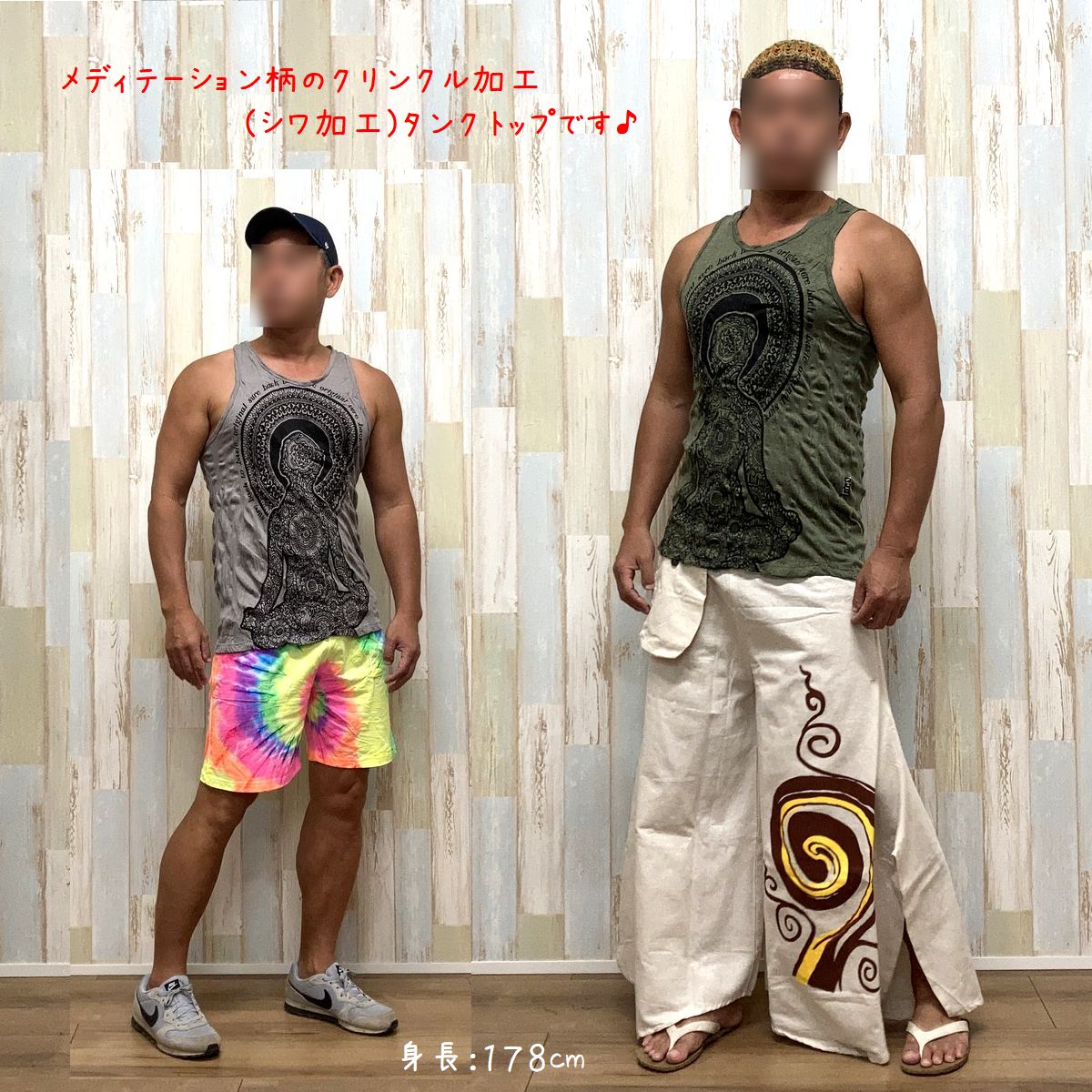 メディテーション柄 タンクトップ アジアン エスニック ノースリーブ アジアンファッション エスニックファッション シワ加工 ヒンディ柄 クリンクル加工 メンズ 男性用 大きいサイズ