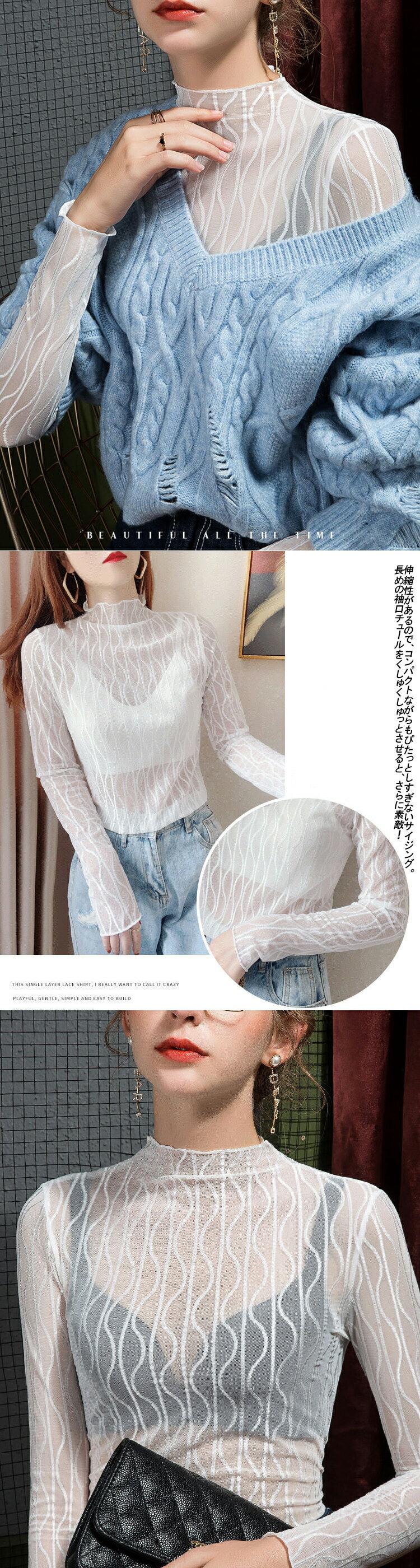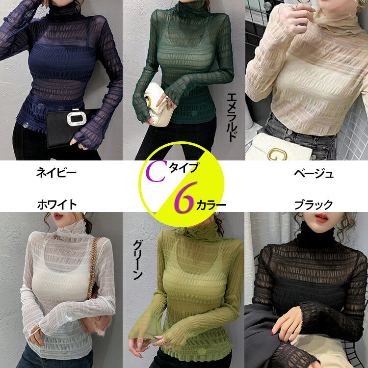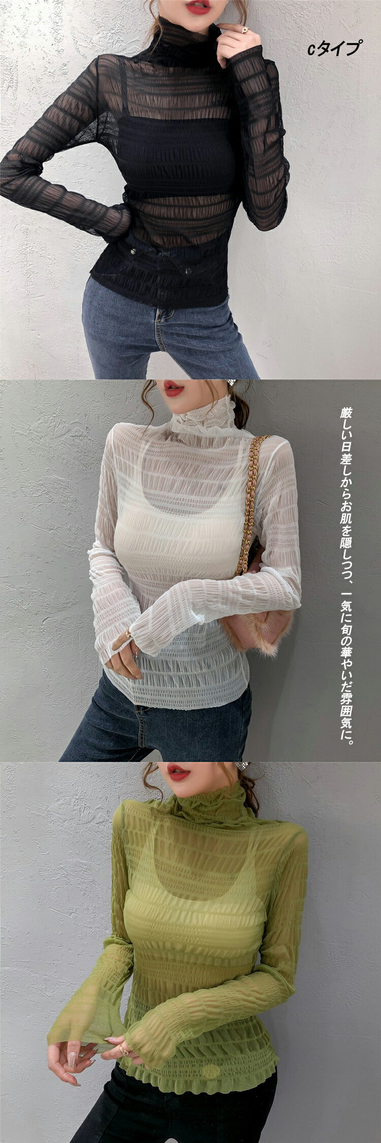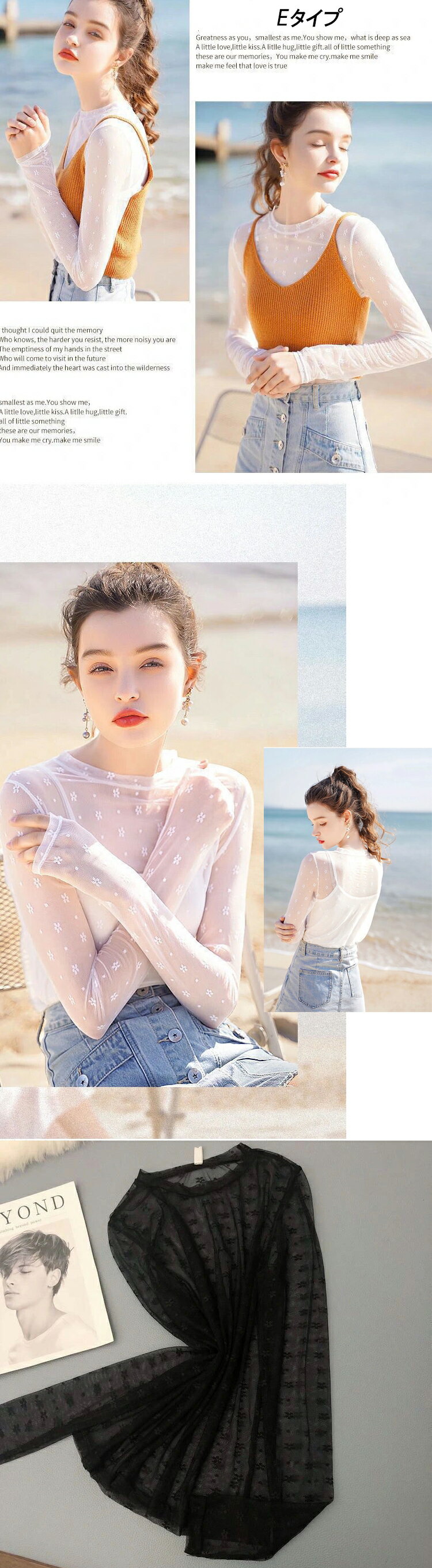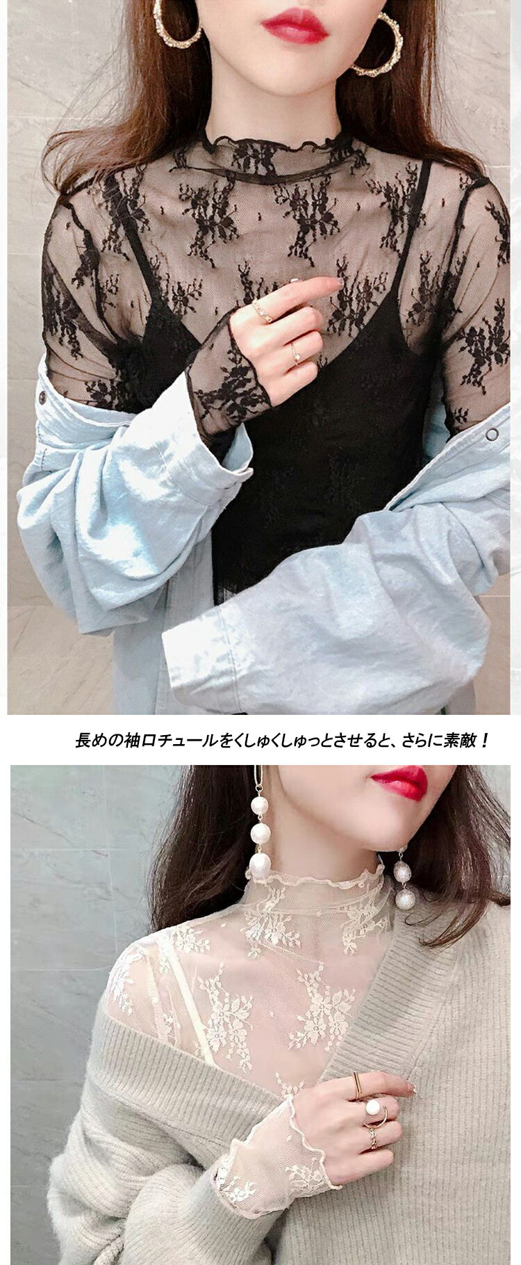 【期間限定!1,280円⇒896円!よりどり3点購入で!】春夏 レディース トップス シアートップス レース チュール シースルートップス 長袖 刺繍 花柄 インナー ハイネック 肌魅せ タートルネック レイヤード UV対策 日焼け対策 キレイめ 華やか 透け感 おしゃれ