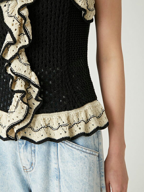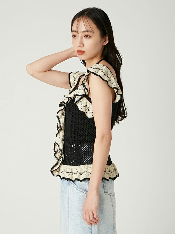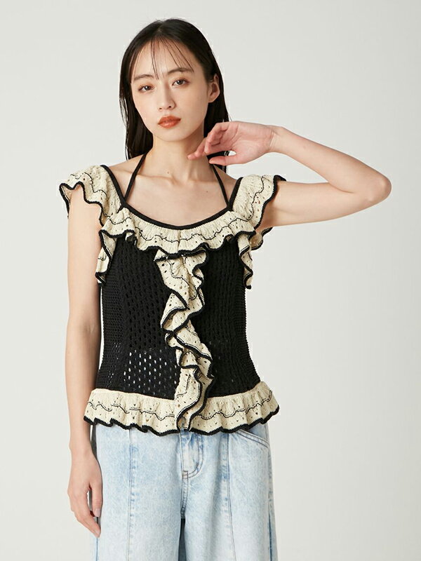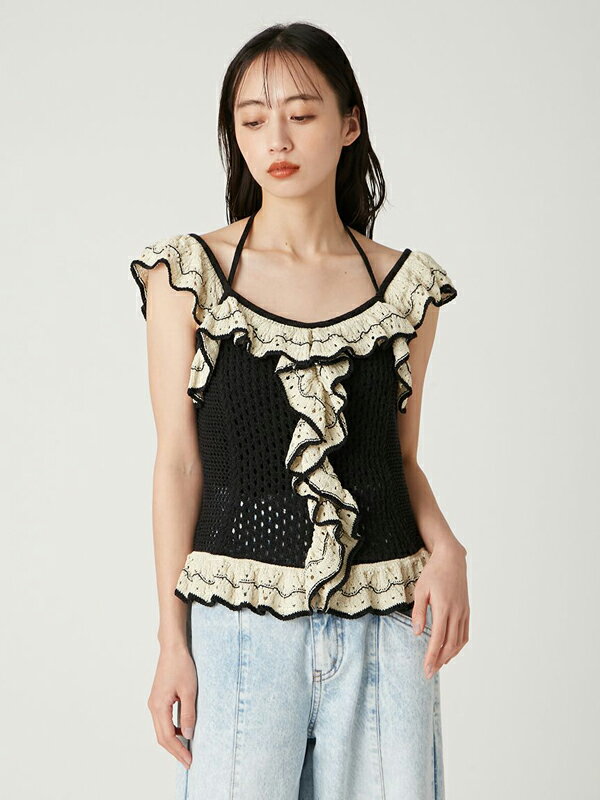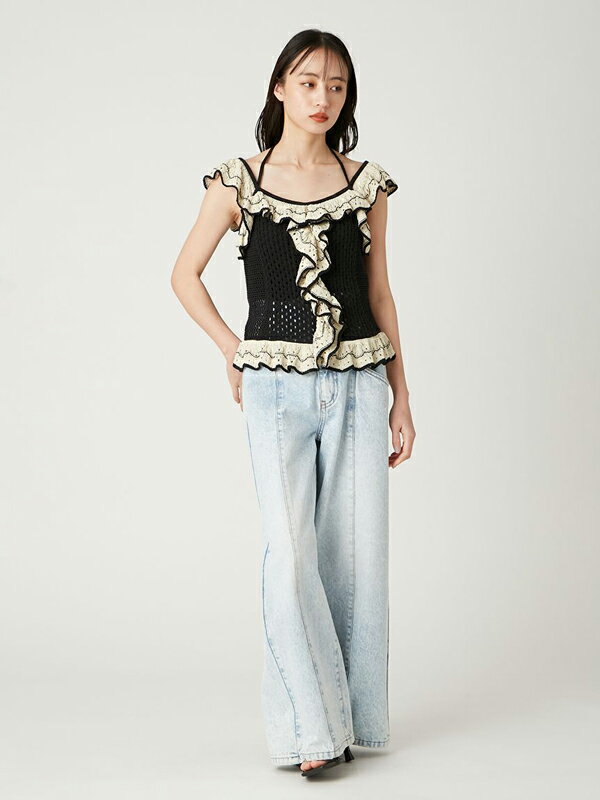 【期間限定10%OFF+本日Wエントリー&2ショップ購入でP5倍】【即日発送(火曜除く)】FRAY I.D フレイアイディー バイカラーフリルメッシュプルオーバー FWNT252140 25SS 2025春夏 新作 キャンセル返品不可