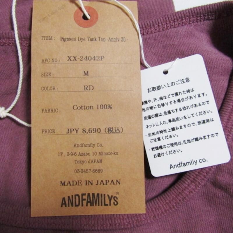 【中古】未使用 ANDFAMILYS アンドファミリー タンクトップ Pigment Dye Tank Top -Anniv 30- ピグメント 30周年記念 レッド M XX-24042Pノースリーブ 加工 メンズ 27106938