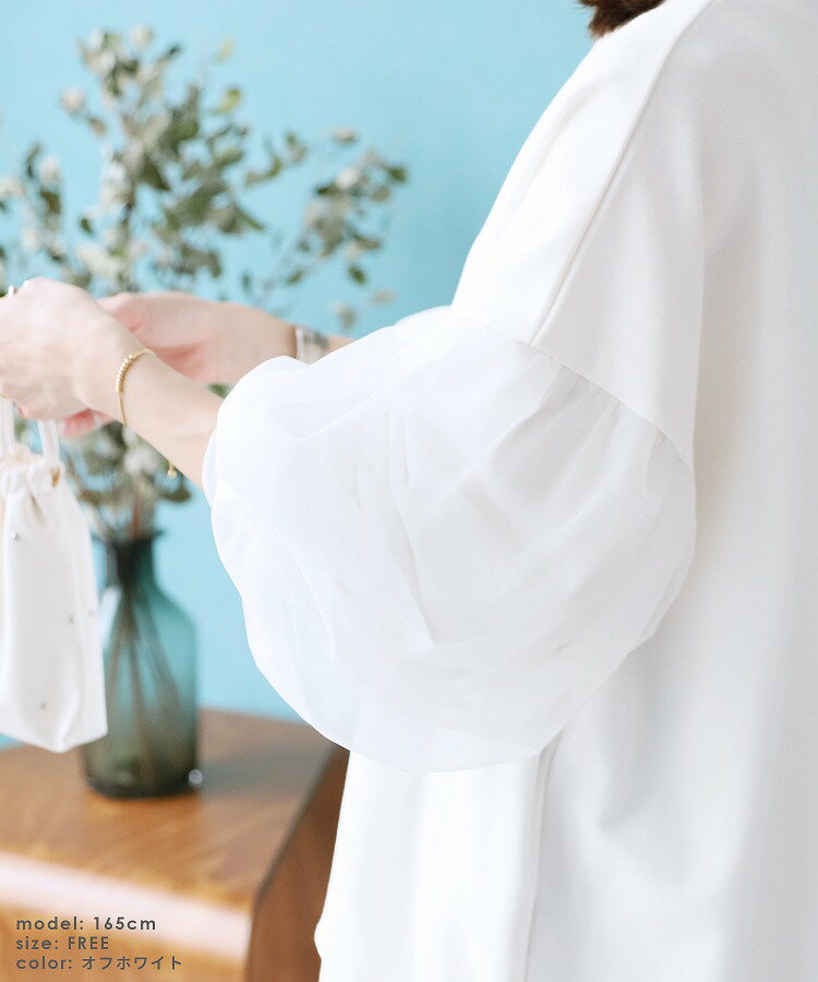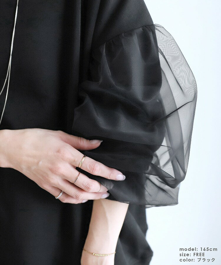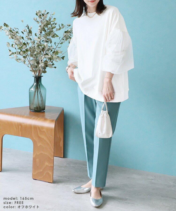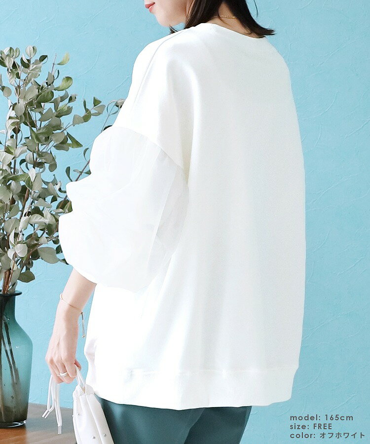 チュール袖スウェット(R23237-s) プルオーバー カットソー スウェット トレーナー オーバーサイズ ボリューム袖 キレイめ カジュアル シンプル チュール 長袖 トップス 春 reca レカ ネコポス発送10 h
