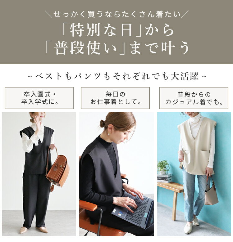 【1/19(日)23時59分まで!500円クーポン付!】スーツ時代はもう終わり Vネックベスト×カーブパンツ(bel-hr-0617-set1) レディース スーツ 洗える セットアップ フォーマル 通勤 オケージョン 卒園式 入園式 卒業式 入学式 セレモニー reca レカ 宅配便配送 k