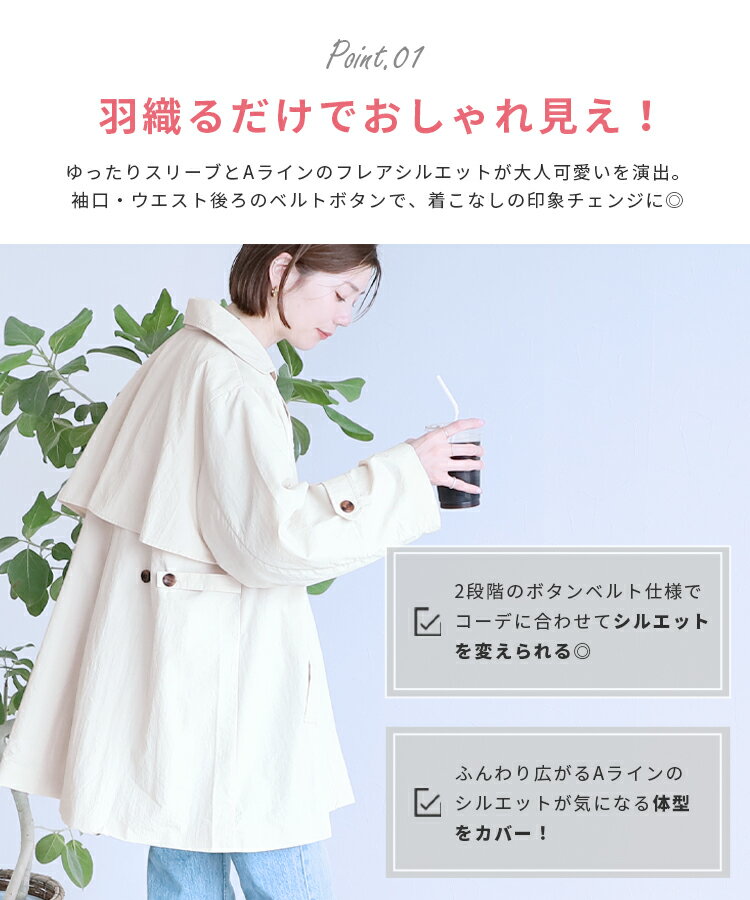 今だけ☆4950円!Aライントレンチコート(y8098) レディース コート アウター ミドル丈 トレンチ風 スプリングコート 春コート トレンチ ライトアウター 軽量 ボリューム袖 春 reca レカ 宅配便発送 s