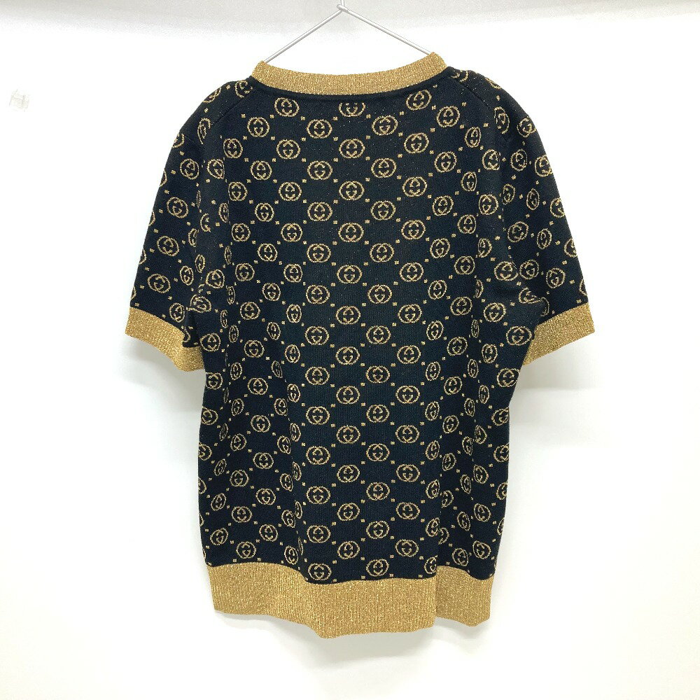 GUCCI グッチ 554995 ラメ GGジャガード 半袖 ニット Tシャツ トップス 半袖Tシャツ コットン レディース ブラック 【中古】