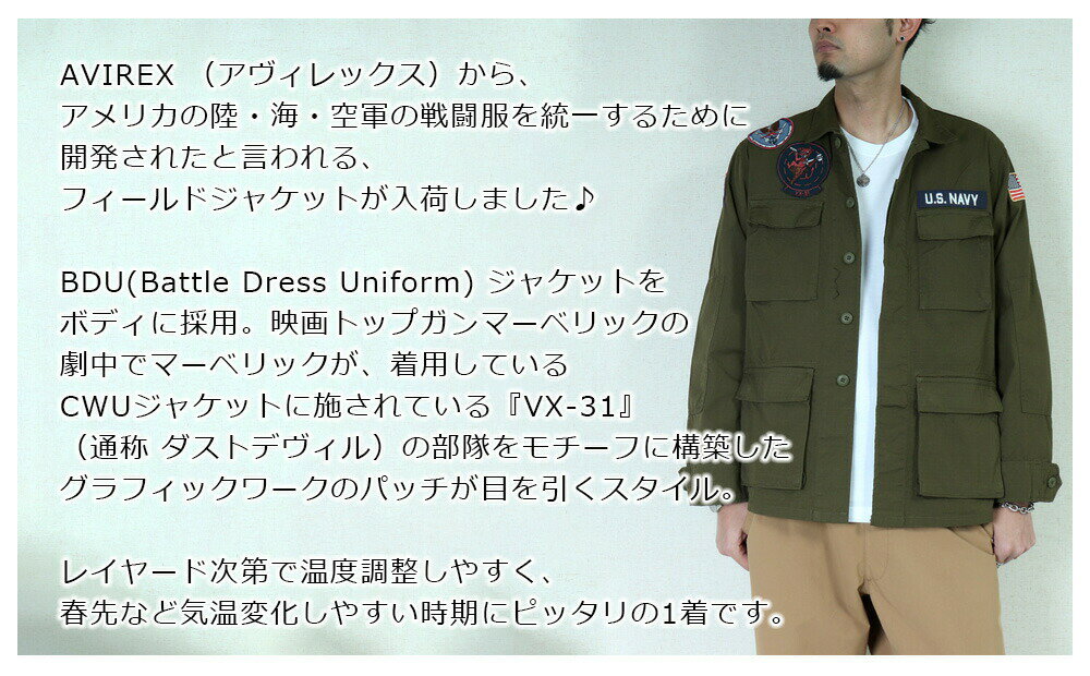 アビレックス シャツ メンズ コットン リップストップ BDU ジャケットアヴィレックス ミリタリーファッション アウター 初夏送料無料 AVIREX COTTON RIP STOP BDU JACKET VX-31 7833155001