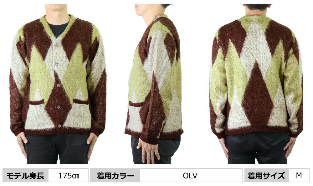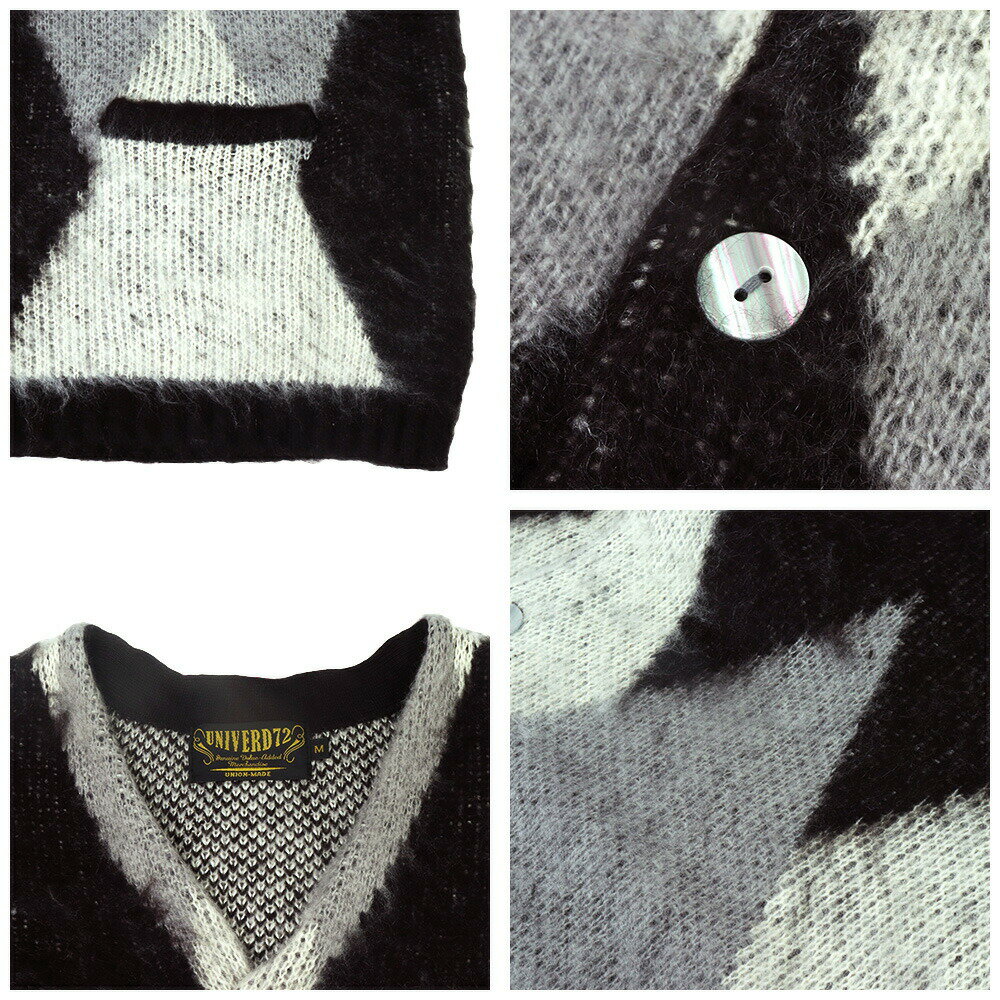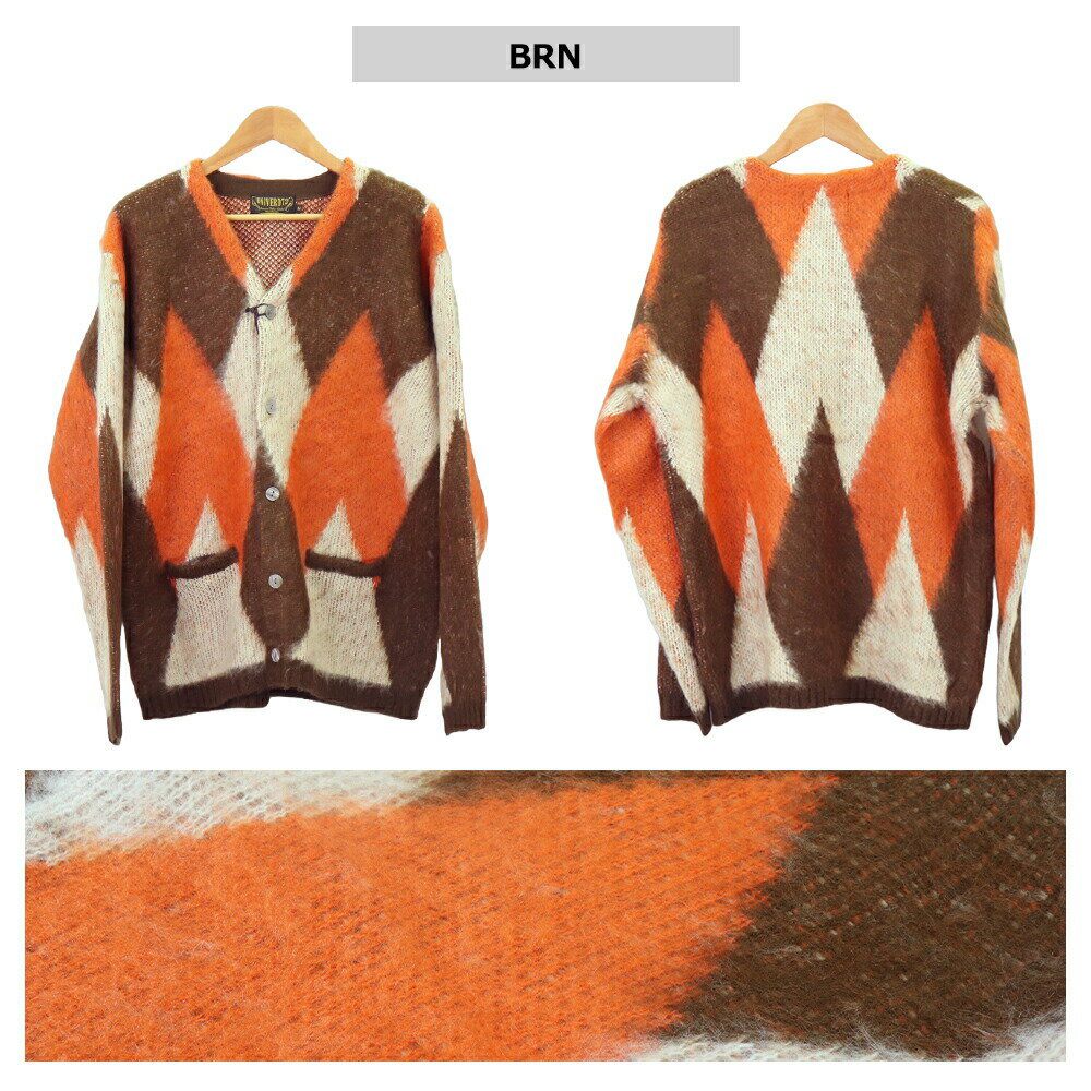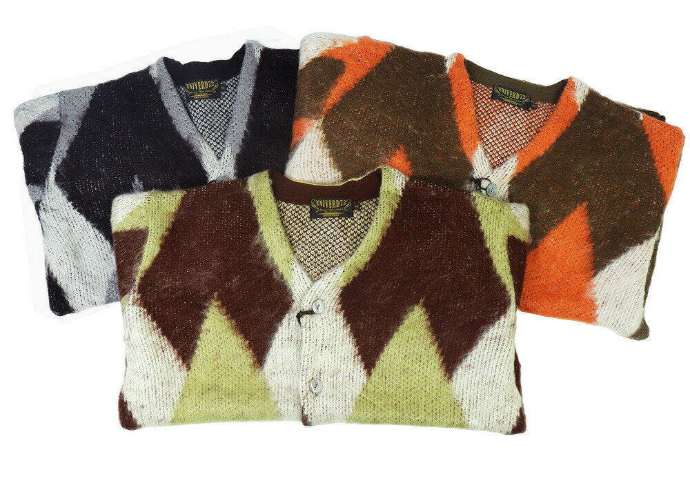 UNIVERD72 ユニバード72 モヘア カーディガン メンズ 秋 冬 メンズ モヘアタッチ 起毛カーディガンアーガイル ニット アーガイル カーディガン 大きいサイズ Vネック カーディガン メンズ 羽織り 秋 ルーズ シンプル ポケット 冬 22247