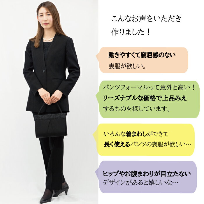 喪服 レディース パンツ パンツスーツ ブラックフォーマル 礼服 50代 ゆったり 大きいサイズ 体型カバー オールシーズン 洗える 前開き 法事 胸当て 葬式 60代 40代 30代 20代 冠婚葬祭 入学式 卒業式 入園式 卒園式 おしゃれ スーツ ストレッチ ママスーツ スーツ