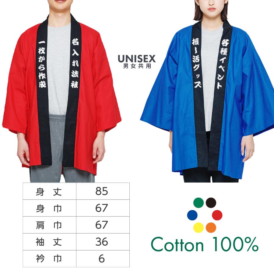 オリジナル 名入れ ハッピ 縄 法被 1枚から 祭り 衣装 大人用 はんてん セール 文化祭 決算 イベント 綿100% イベント グッズ 衣装 応援 推しグッズ 帯なし