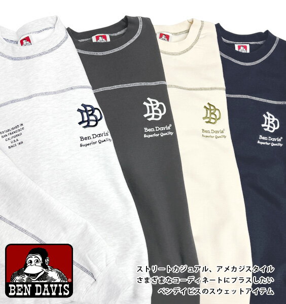 BEN DAVIS スウェット ベンデイビス ステッチ トレーナー メンズ 裏起毛 ベンデイヴィス ロゴ 刺繍 クルーネック スエット ユニセックス bendavis ストリート カジュアル アメカジ トップス BEN-2159
