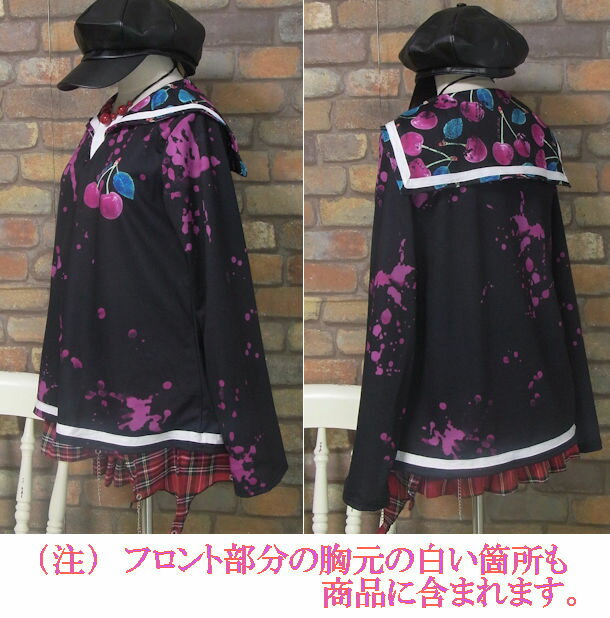 『ACDC RAG』セーラー襟☆毒さくらんぼ長袖プルオーバー【原宿系】(さくらんぼ/パープル)ブラック襟)(春・秋) レディース トップス 女性 やみかわ 病みかわ 闇かわ バンギャ 紫 黒 パンク サブカル 果実 セーラー衿 ハロウィン『エーシーディーシーラグ』