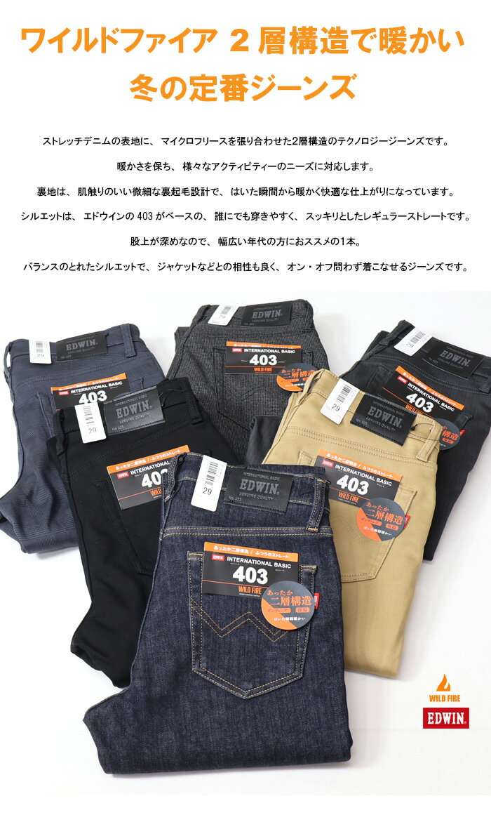 10%OFF 2024年秋冬 セール EDWIN エドウィン WILD FIRE 暖パン E403WF 403 あったか二層構造 ふつうのストレート 股上深め 暖デニム メンズ 秋冬限定 ジーンズ 暖かいパンツ 送料無料 SALE