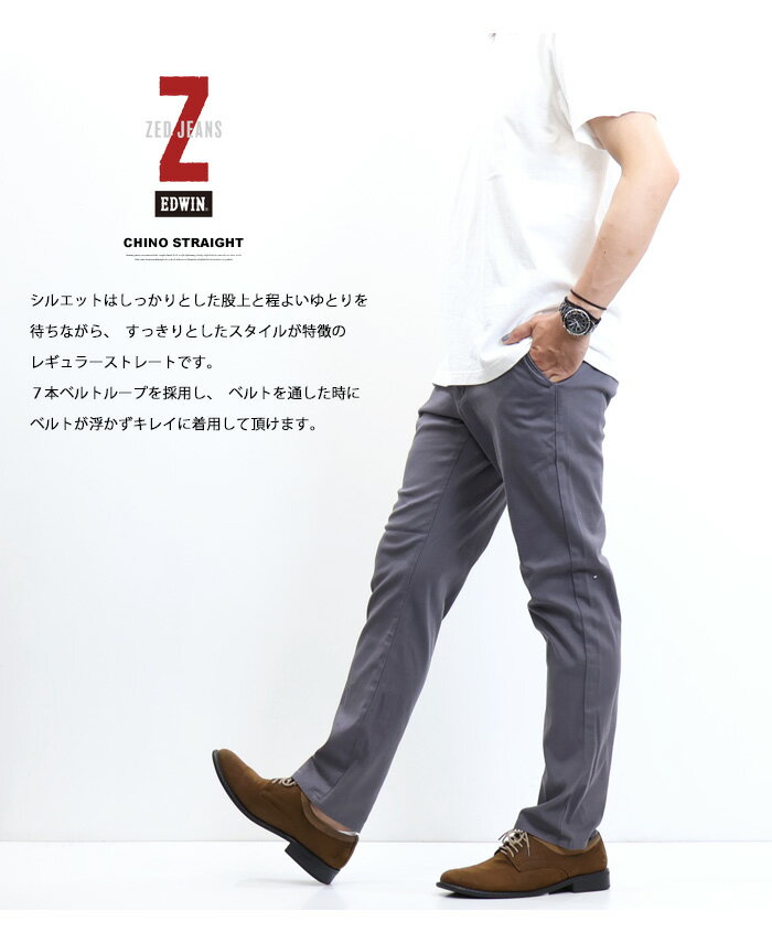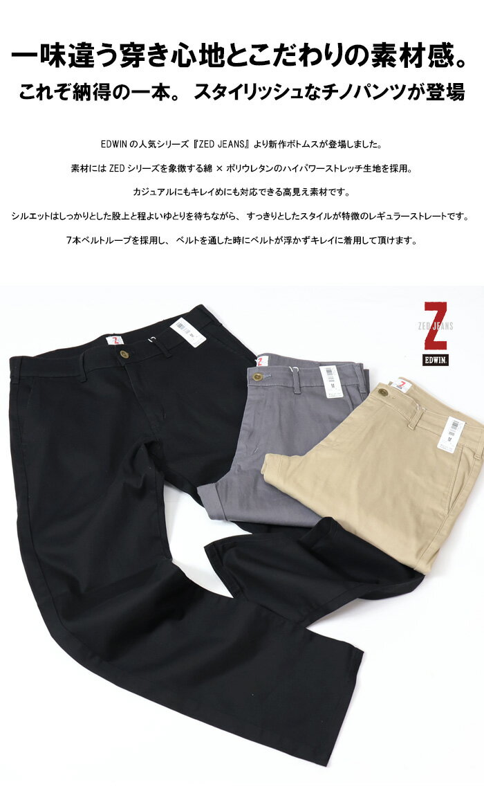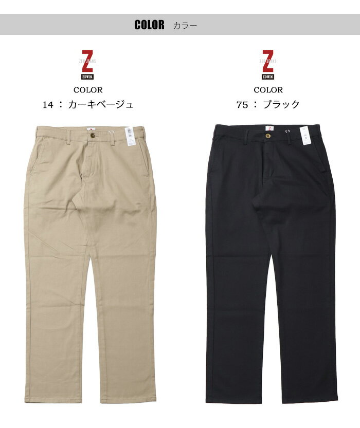 10%OFF 定番 セール EDWIN エドウィン ZED JEANS EZD03C チノパンツ ストレート ストレッチ カラーパンツ ボトムス メンズ 送料無料 SALE