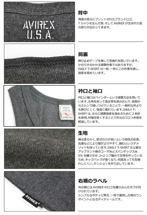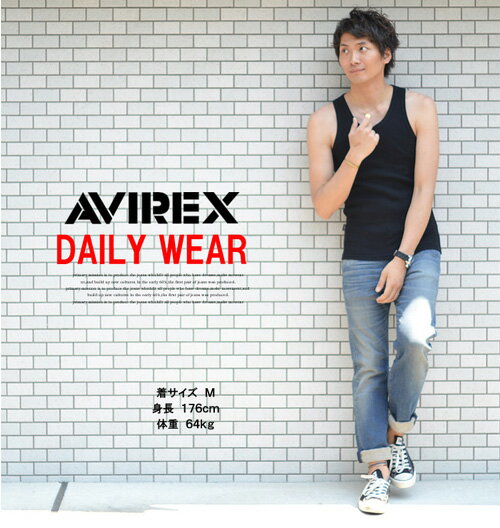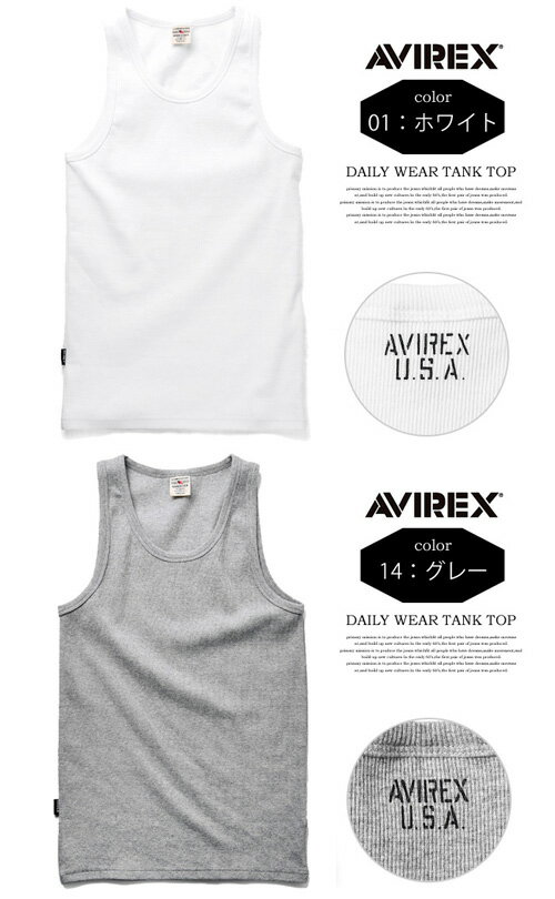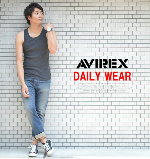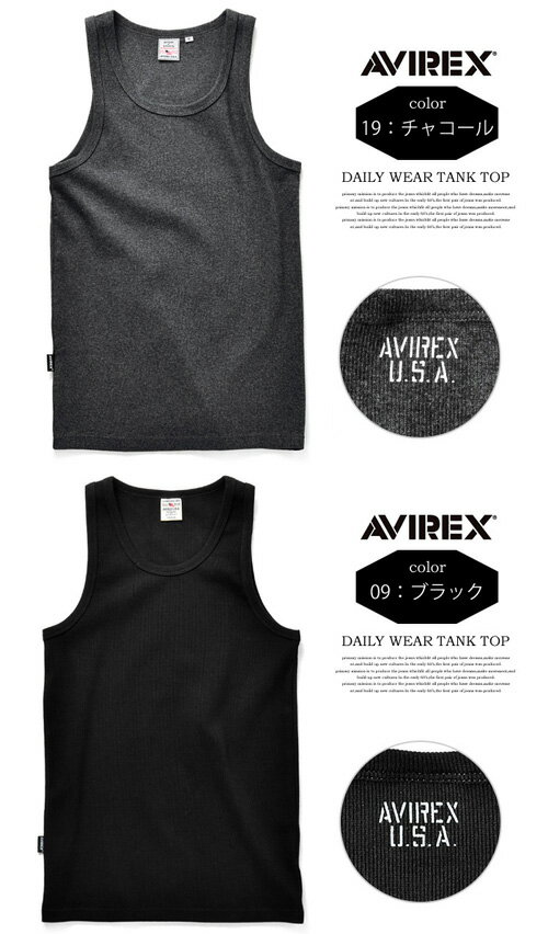AVIREX アビレックス リブ素材 レギュラー タンクトップ 無地 6183140 6143507 783-0937001 ワイドバック メンズ 半T カットソー ノーマルタンクトップ トップス ランニング アヴィレックス