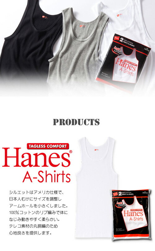 Hanes ヘインズ 2枚組 リブ素材 タンクトップ Aシャツ HM2-K701 パックTシャツ 無地 ホワイト ブラック グレー 肌着 メンズ 半T インナー 2枚セット 白 黒 2Pセット 下着 パック入り HANES A-SHIRTS 定番 【楽ギフ_包装】