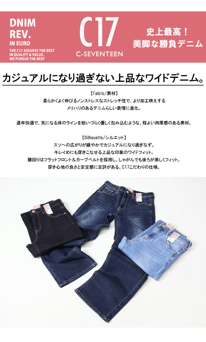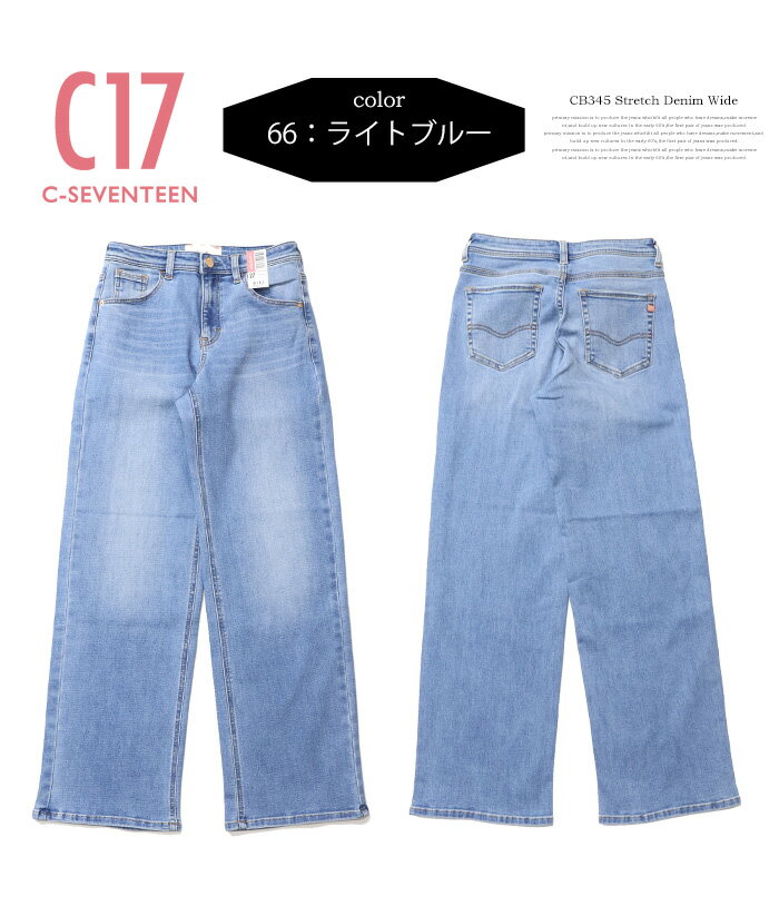 10%OFF 定番 セール C17 C-SEVENTEEN CB345 ベーシック ワイド デニム ジーンズ ストレッチ シーセブンティーン 送料無料 SALE レディース