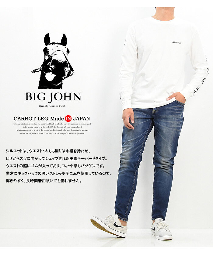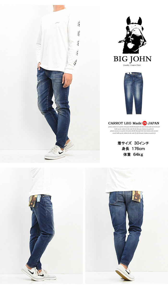 BIG JOHN ビッグジョン M3 キャロットレグ テーパード ダメージ加工 MMM134J-414C 日本製 ハイパワーストレッチデニム ジーンズ メンズ 送料無料 【楽ギフ_包装】