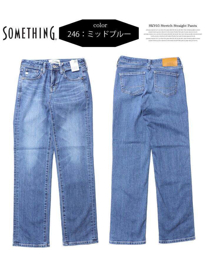 10%OFF セール 定番 SOMETHING サムシング SKY03 ストレッチデニム スタンダードストレート ジーンズ パンツ 定番 日本製 レディース 送料無料 SALE
