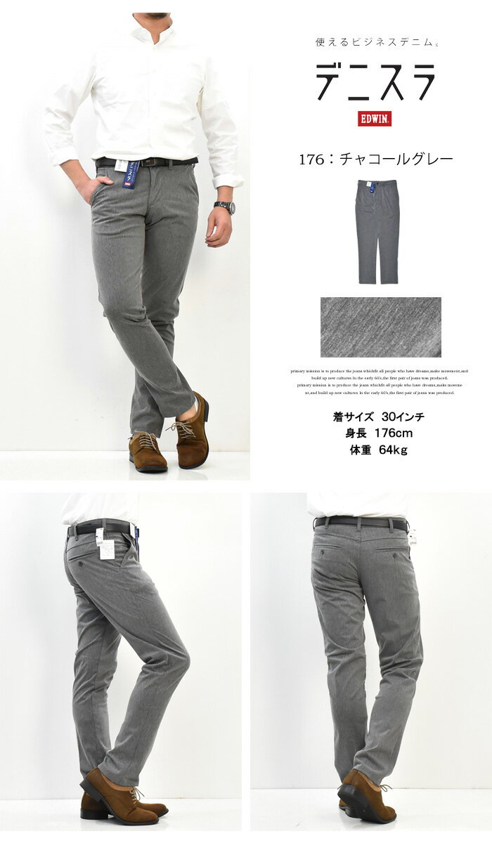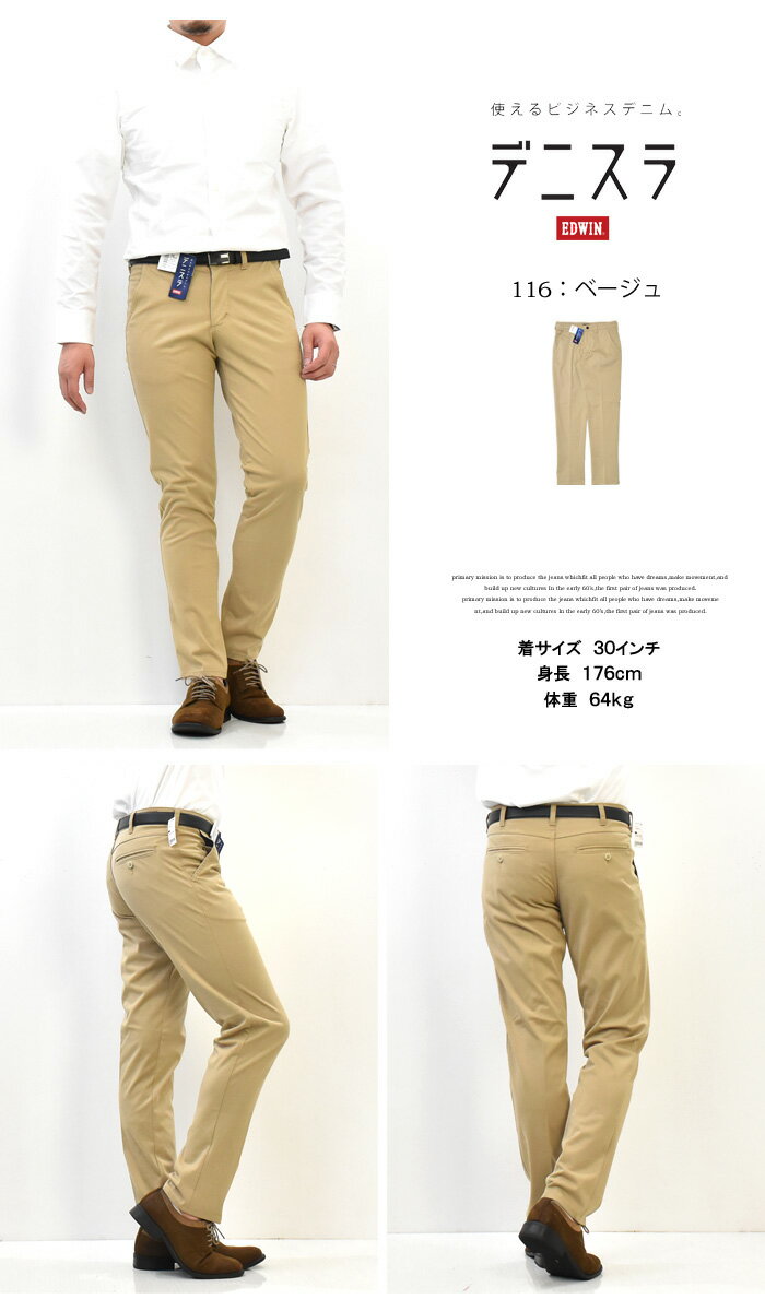 10%OFF セール 定番 EDWIN エドウィン デニスラ EDB102 スリムテーパード スラックス チノパンツ ストレッチ トラウザーパンツ メンズ 仕事着 ビジネスカジュアル 送料無料 SALE