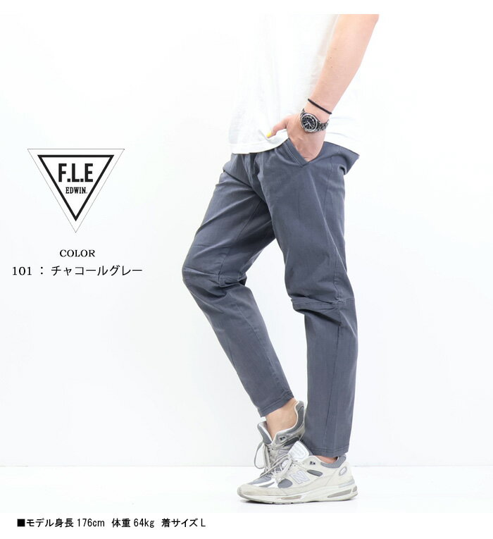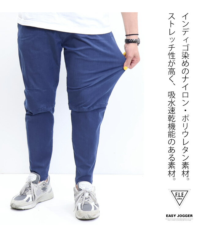 10%OFF セール 定番 EDWIN エドウィン F.L.E ES902 イージー ジョガーパンツ インディゴ染め イージーパンツ メンズ 切り替え フリー 立体裁断 ウエストゴム ストレッチ FLE 送料無料 SALE