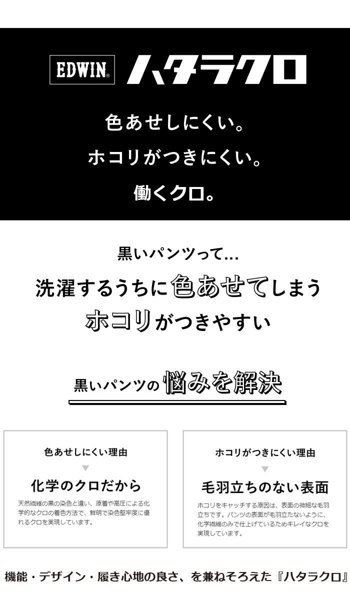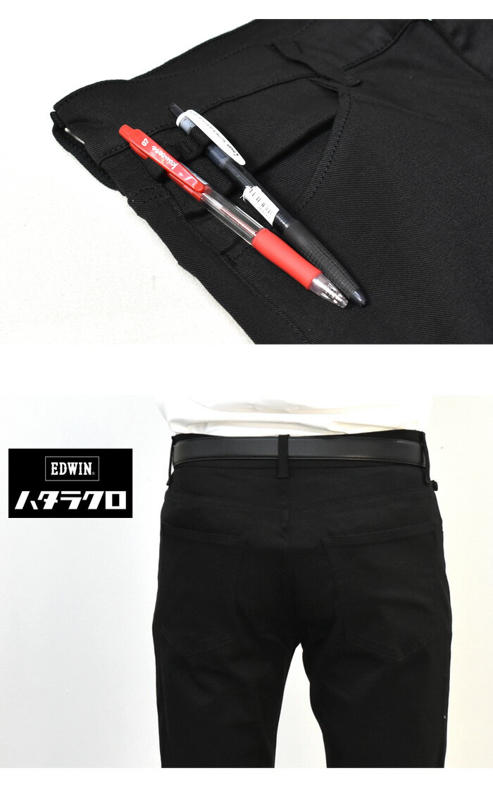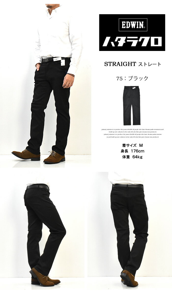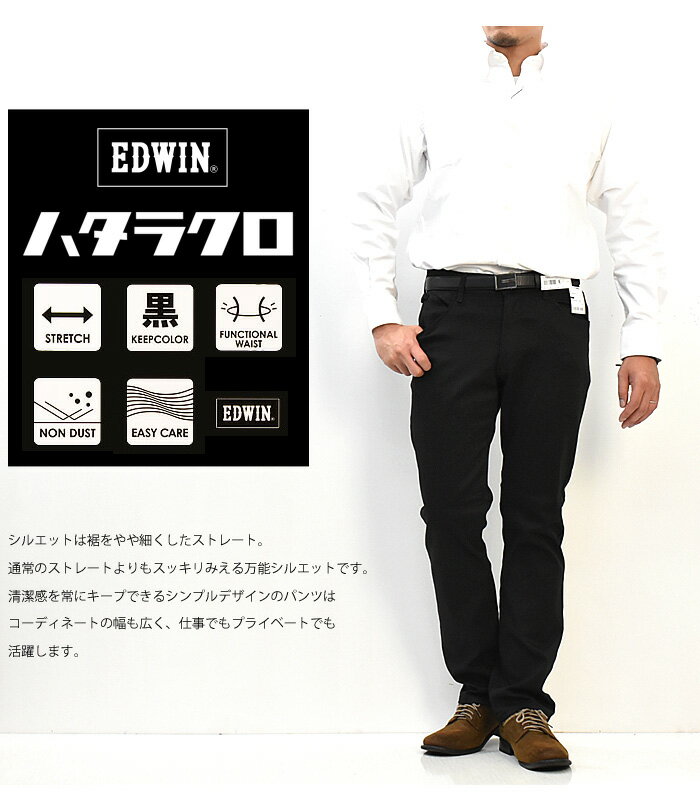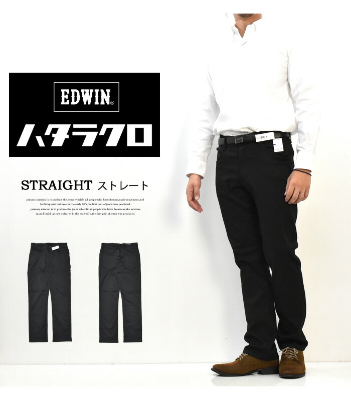 10%OFF セール 定番 EDWIN エドウィン ハタラクロ ストレート ストレッチ MEB03M-75 仕事着 作業着 通勤 パンツ メンズ 送料無料 ブラック 黒 SALE