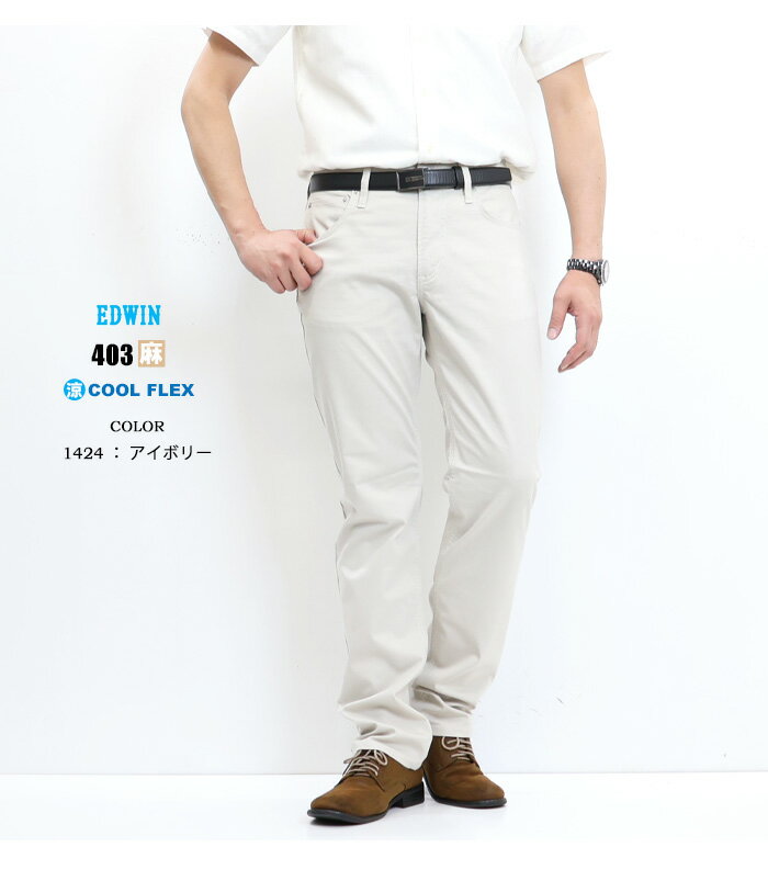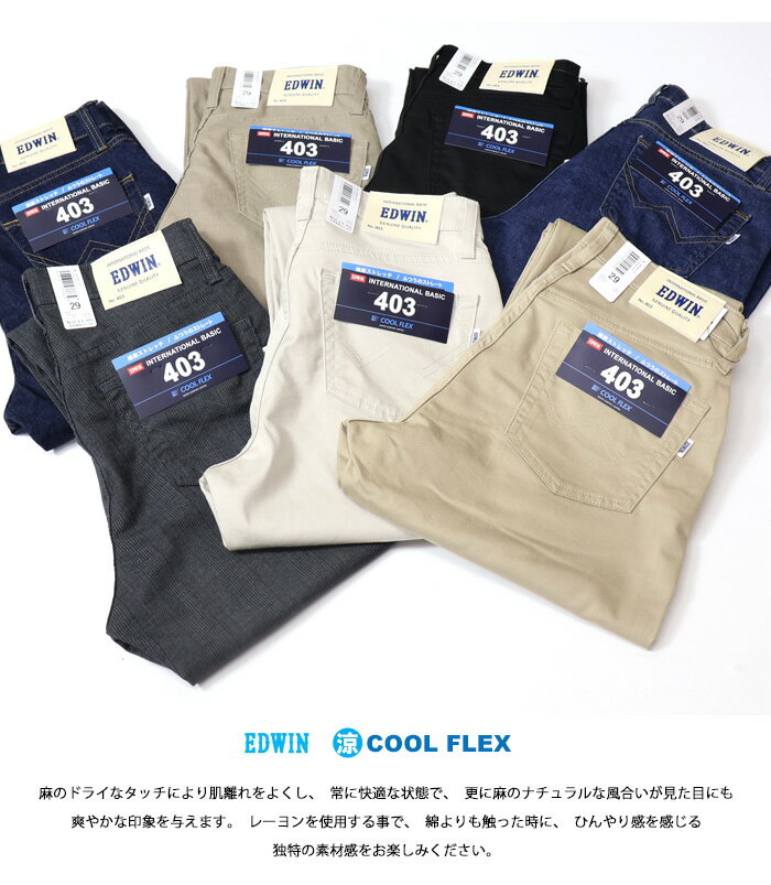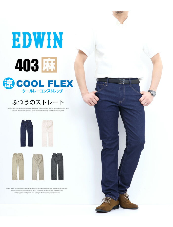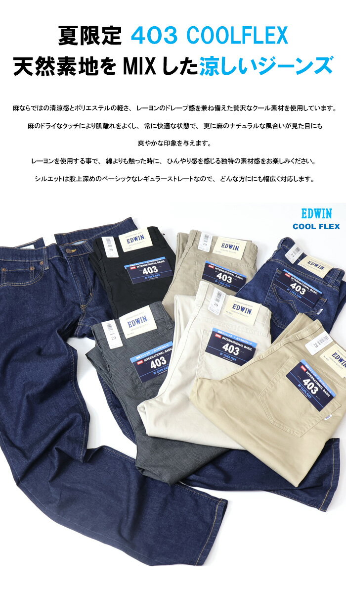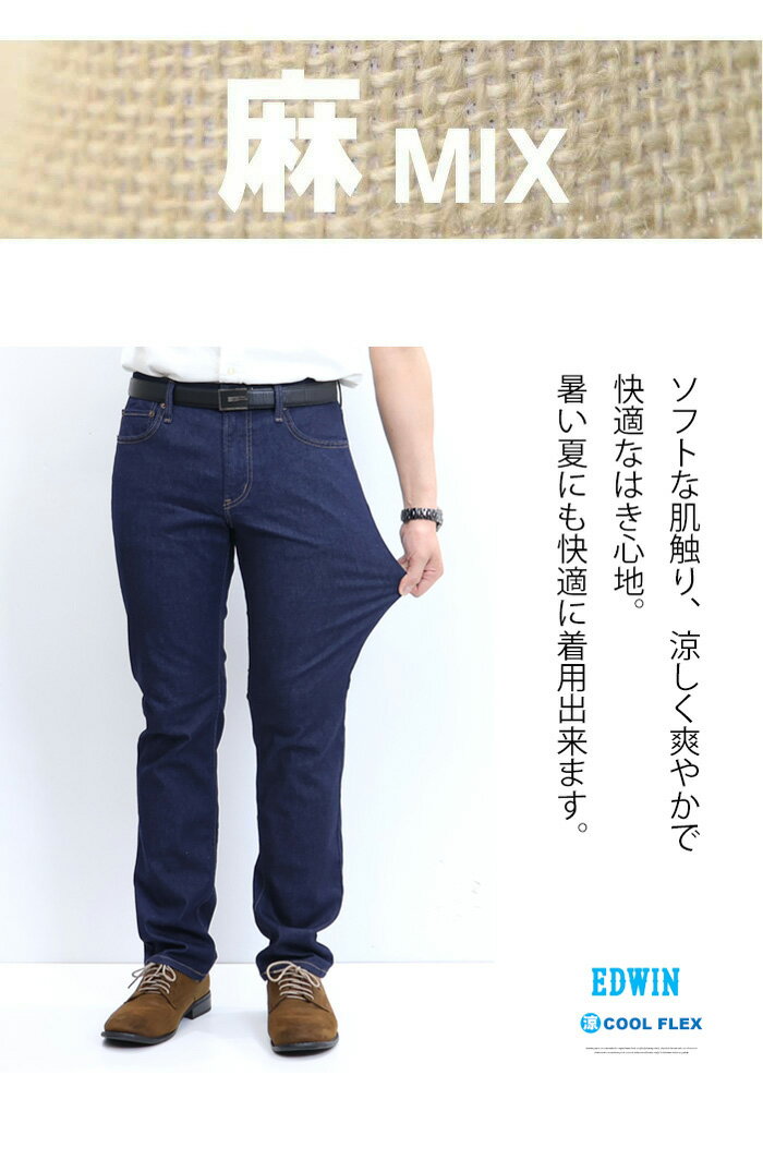 大きいサイズ SALE 2024年春夏 セール EDWIN エドウィン 403 COOL FLEX E403CA 綿麻ストレッチ ふつうのストレート 股上深め クール デニム メンズ ジーンズ 涼しいパンツ 送料無料