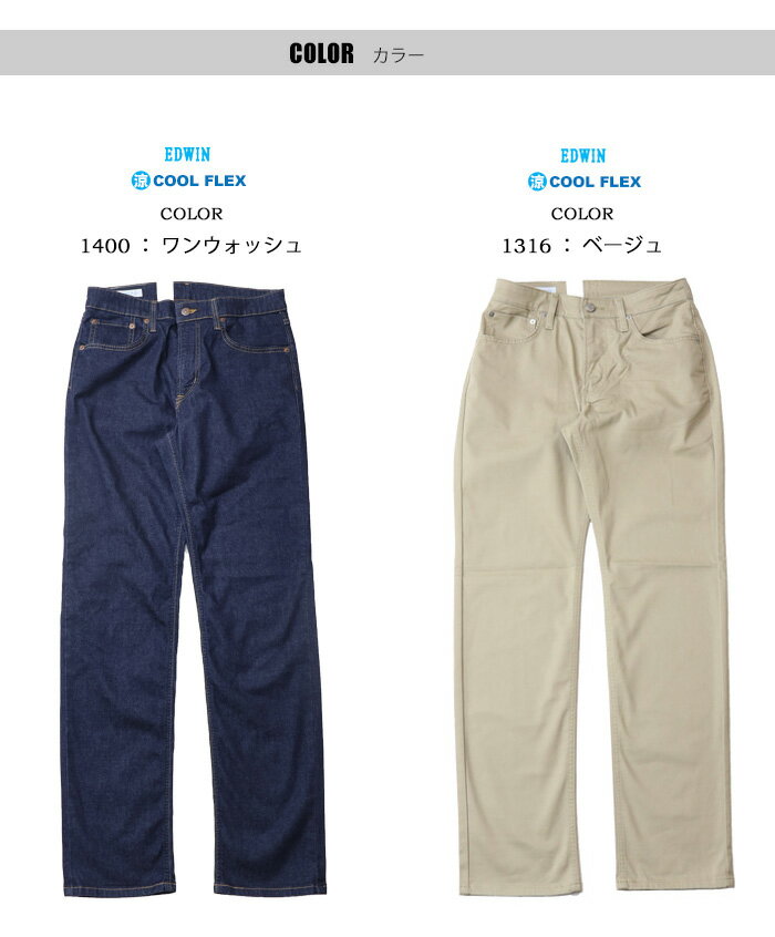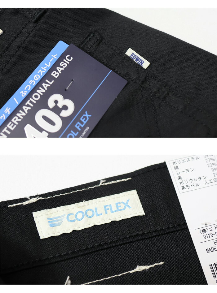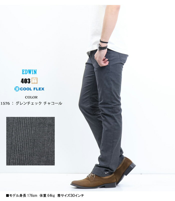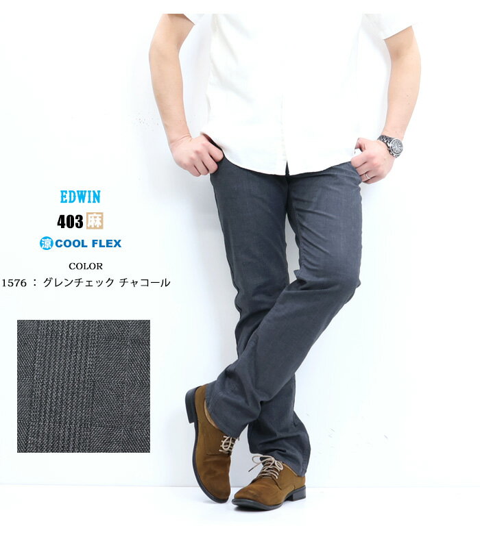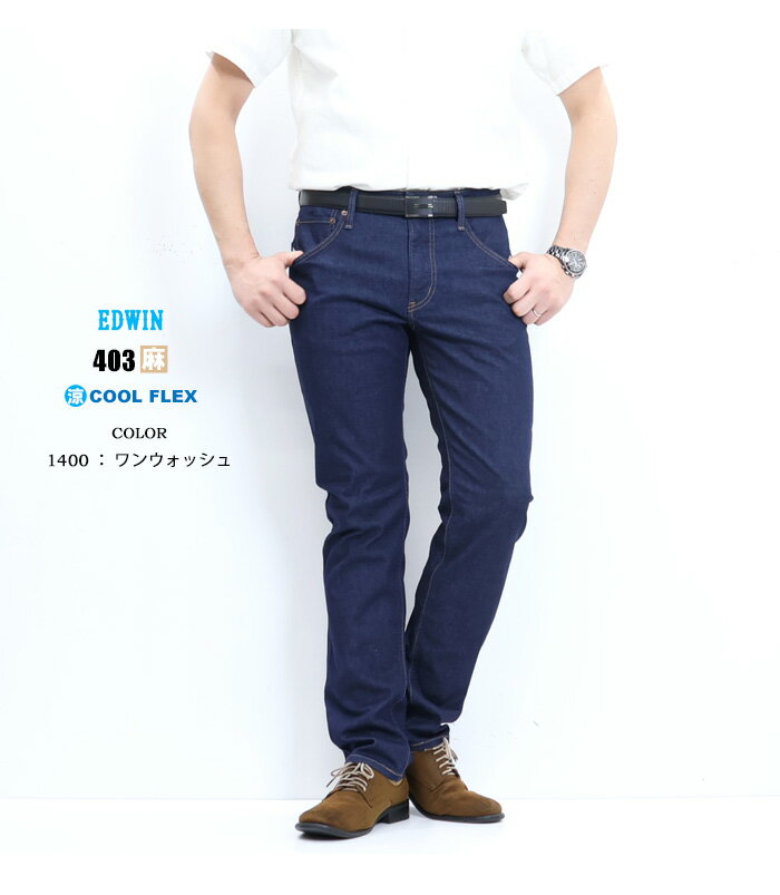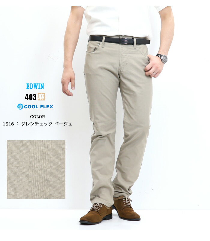 大きいサイズ SALE 2024年春夏 セール EDWIN エドウィン 403 COOL FLEX E403CA 綿麻ストレッチ ふつうのストレート 股上深め クール デニム メンズ ジーンズ 涼しいパンツ 送料無料
