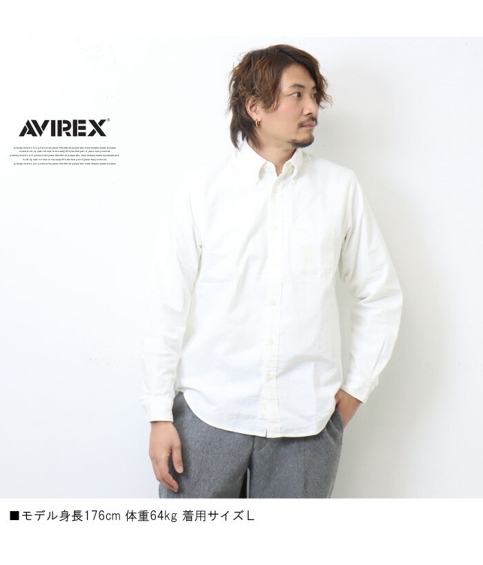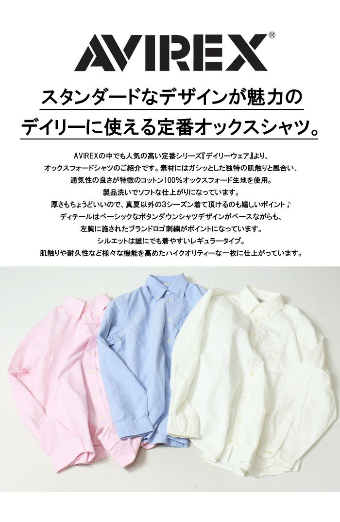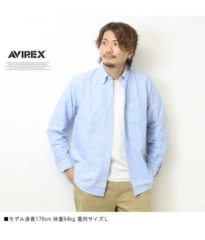 AVIREX アヴィレックス 長袖 オックスシャツ ボタンダウン 783-3920004 メンズ オックスフォードシャツ ボタンダウンシャツ トップス 長袖シャツ 定番 アビレックス 送料無料