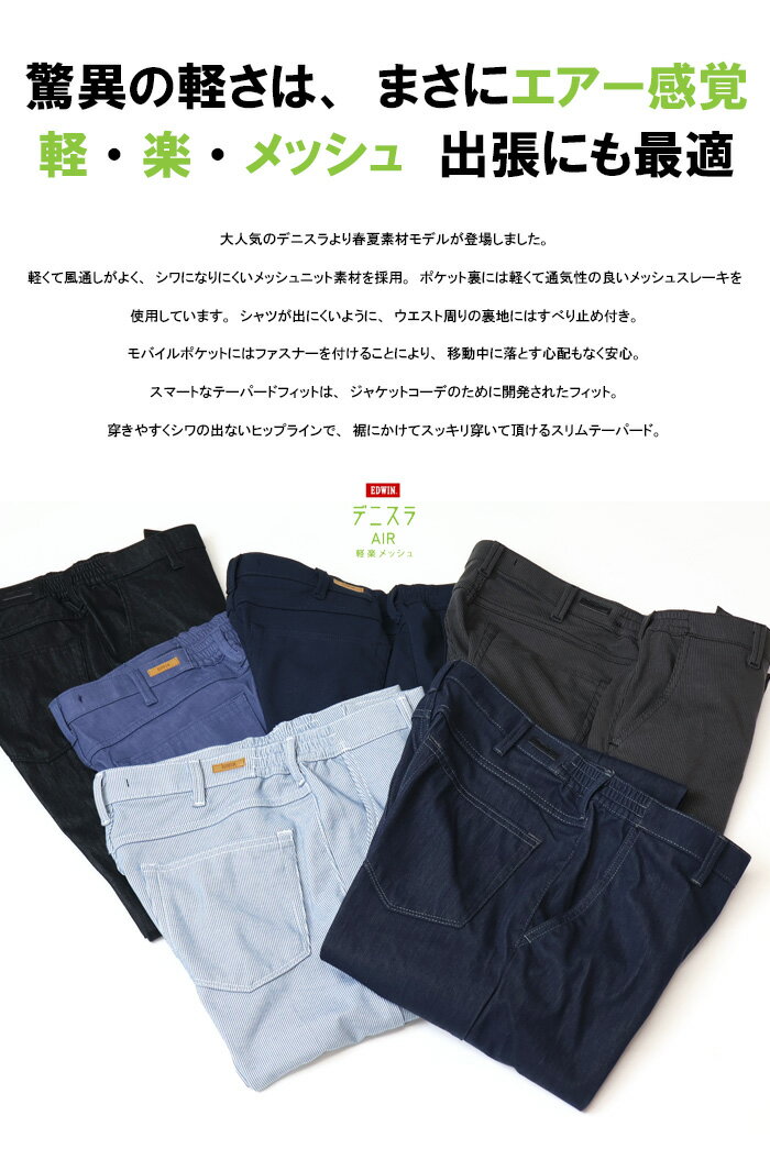 10%OFF 2025年春夏 セール 大きいサイズ EDWIN エドウィン EDB11R デニスラAIR スリムテーパード スラックス チノパンツ ストレッチ トラウザーパンツ メンズ 仕事着 ビジネスカジュアル 送料無料 SALE