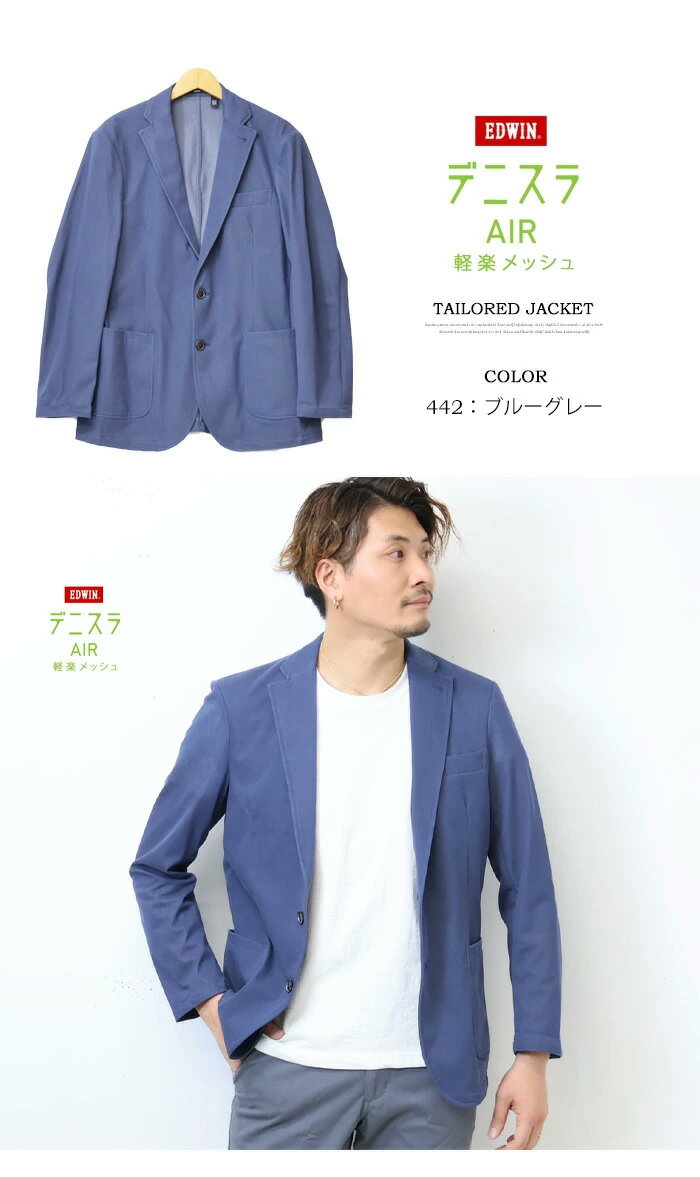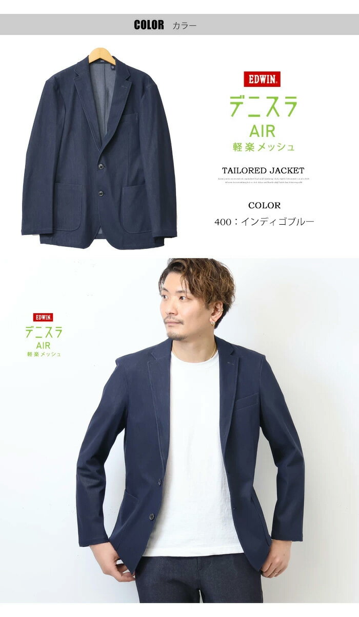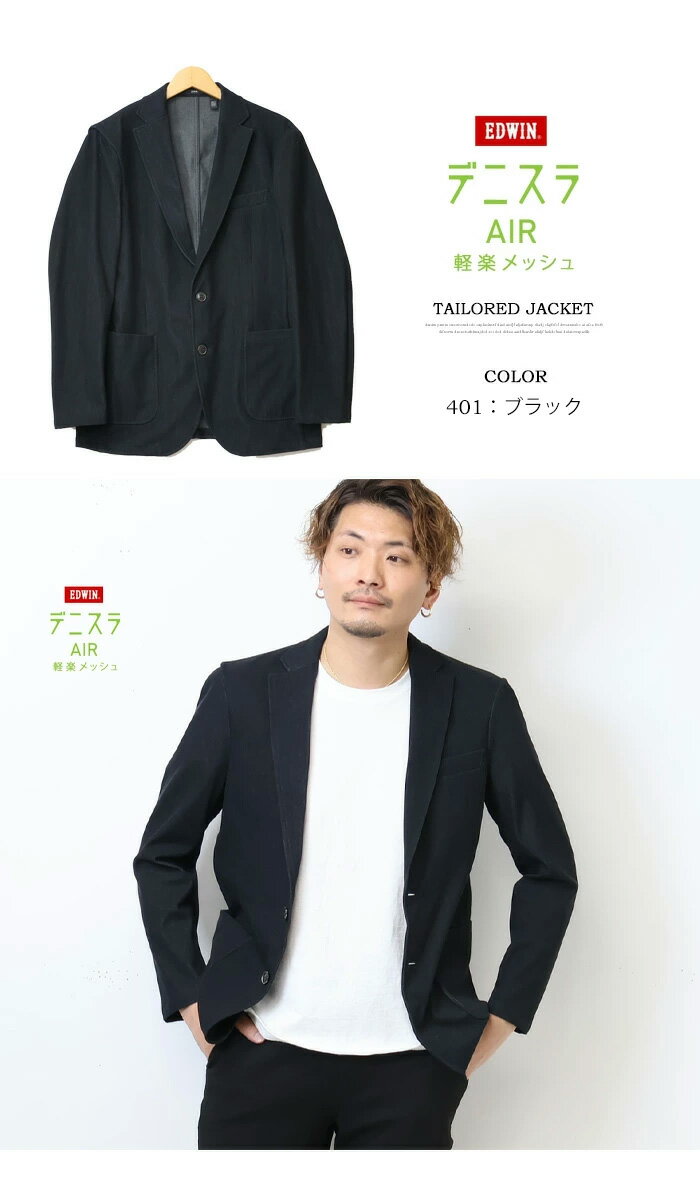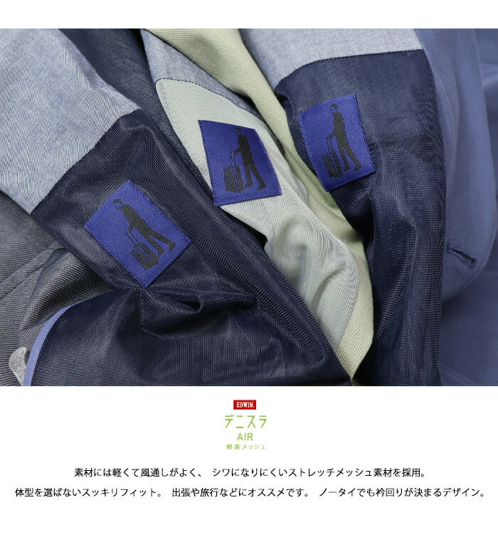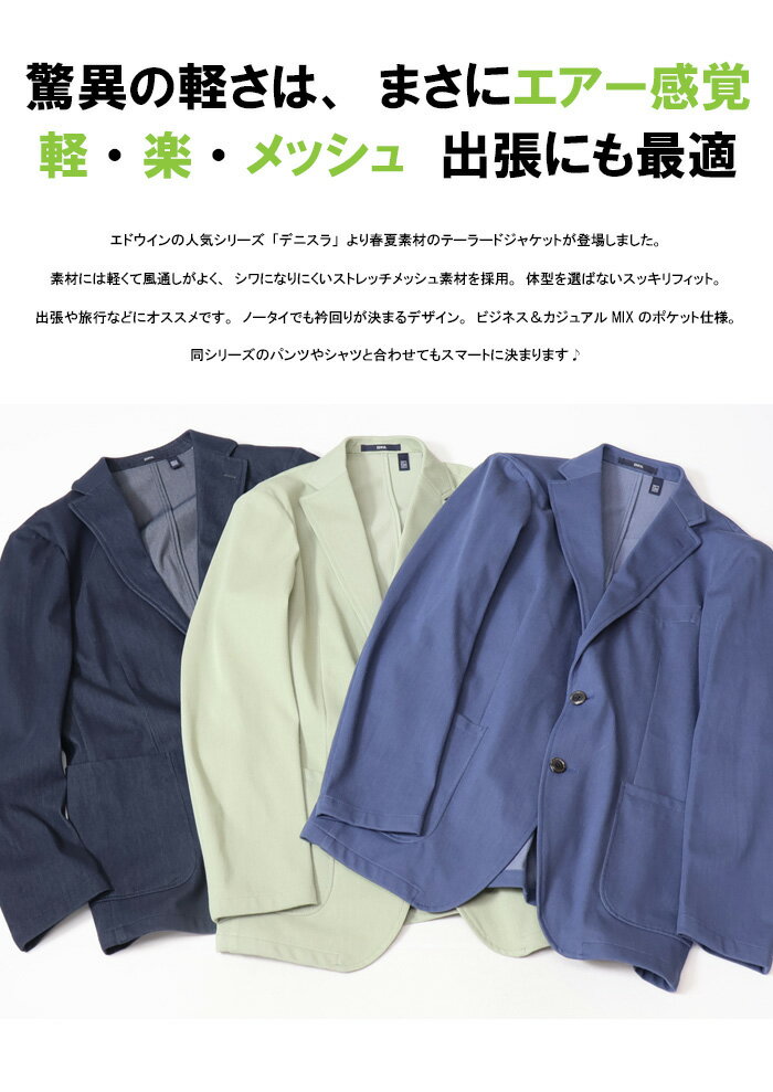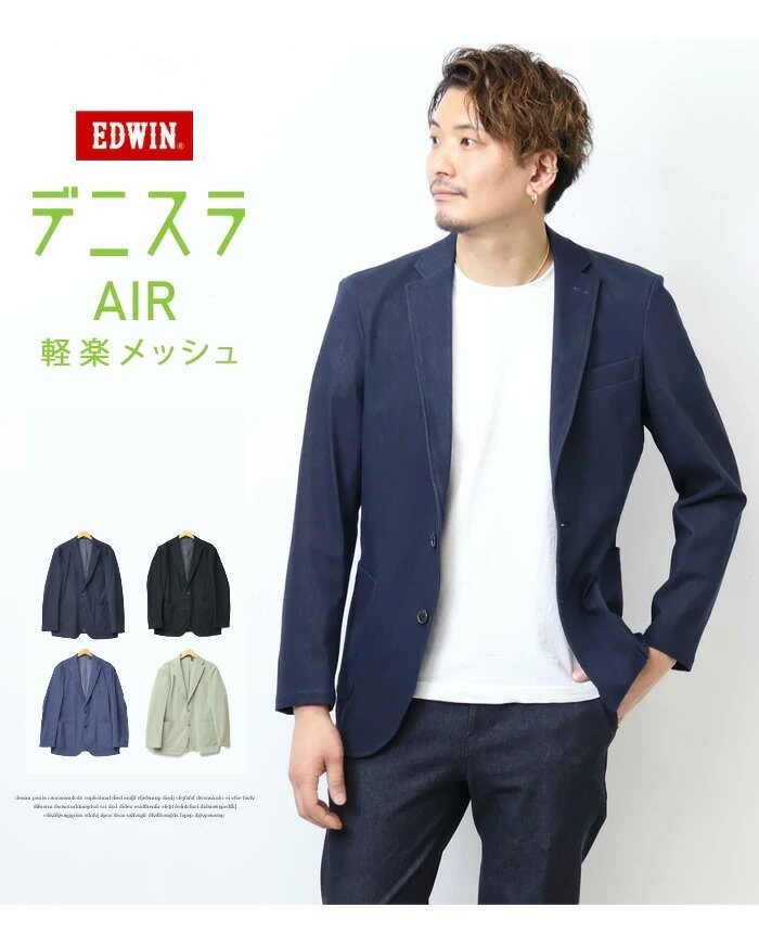 10%OFF 2024年春夏 セール EDWIN エドウィン デニスラAIR EDB803 テーラードジャケット 羽織り スーツ メンズ 仕事着 ビジネスカジュアル 送料無料 SALE