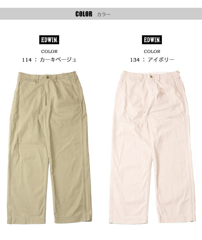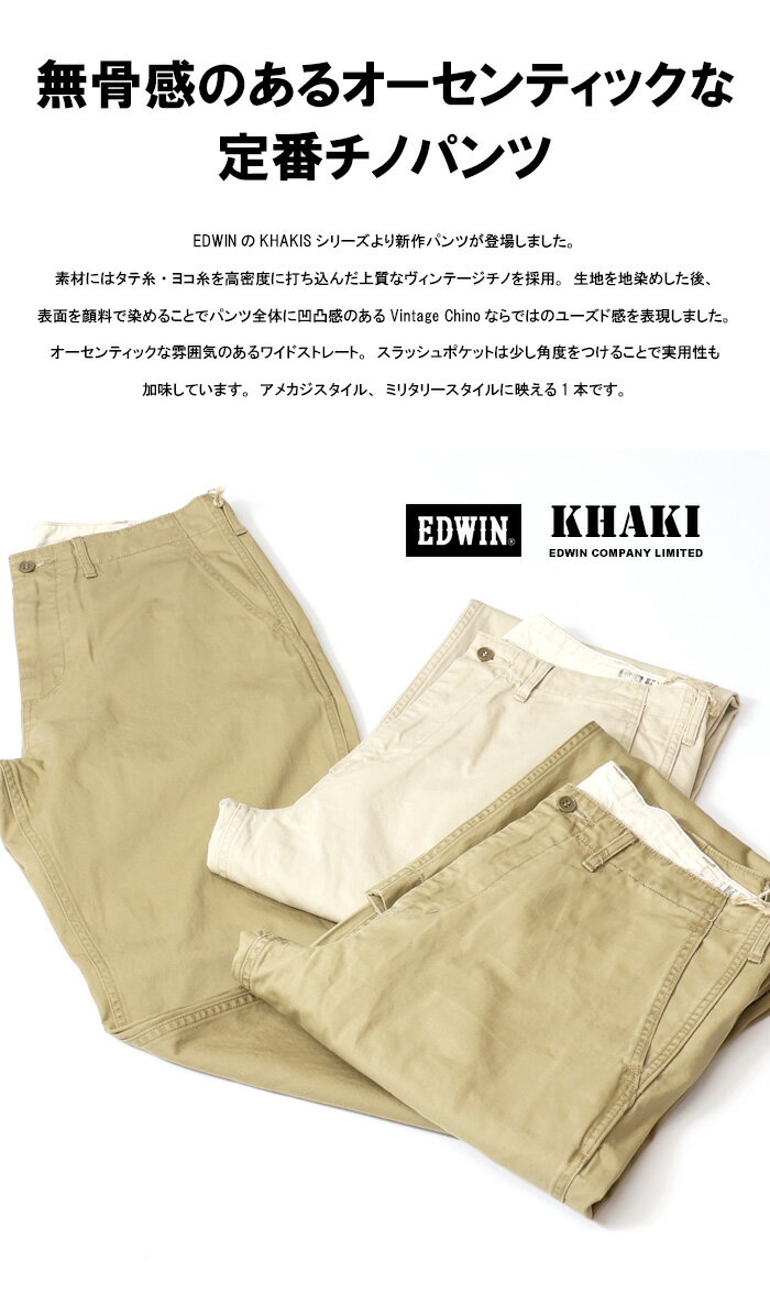 10%OFF セール 定番 EDWIN エドウィン KHAKIS ワイドストレート チノパンツ トラウザーパンツ K0905 チノパン メンズ 送料無料 SALE