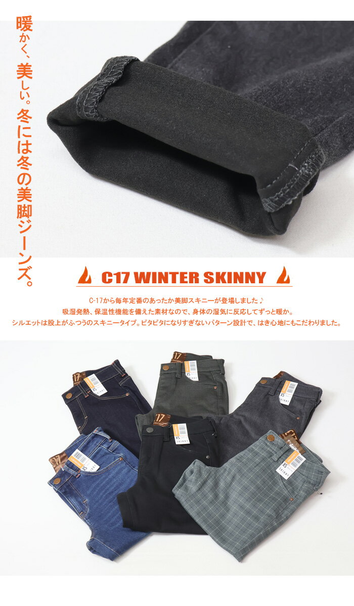 10%OFF 2024年秋冬 セール C17 レディース 暖パン ウインタースキニー 秋冬用 暖かいジーンズ 暖かいパンツ 裏微起毛 ストレッチ デニム ジーンズ パンツ C-17 シーセブンティーン スリム SALE CW326
