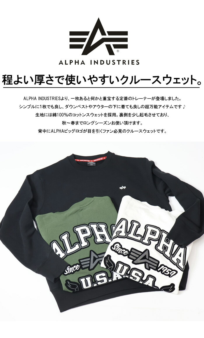 10%OFF 2024年秋冬 セール ALPHA INDUSTRIES アルファ インダストリーズ ロゴプリント スウェットシャツ BACK FLYING-A トレーナー 裏微起毛 メンズ 送料無料 SALE TC1641