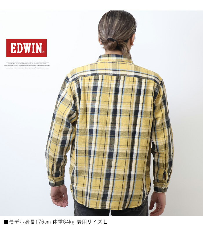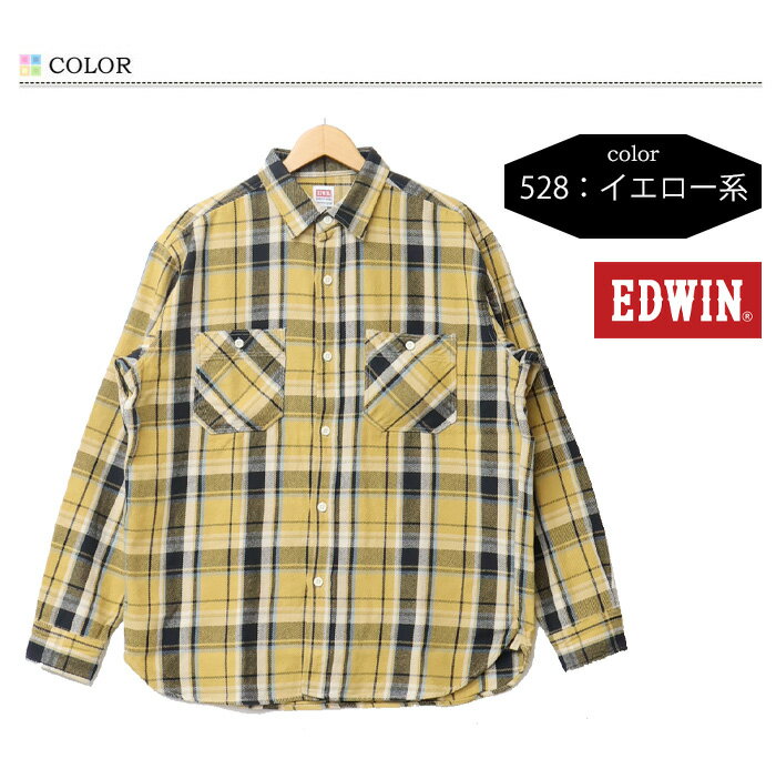 10%OFF 2024年秋冬 セール EDWIN エドウィン チェック ワークシャツ チェックシャツ 長袖シャツ メンズ 送料無料 ET2138 SALE