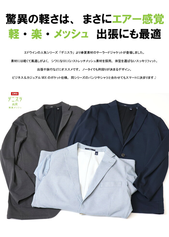 10%OFF 2025年春夏 セール 大きいサイズ EDWIN エドウィン デニスラAIR テーラードジャケット ジャケット 羽織り スーツ 春 夏 メンズ 仕事着 ビジネスカジュアル デニスラエアー ブレザー 送料無料 EDB83R SALE