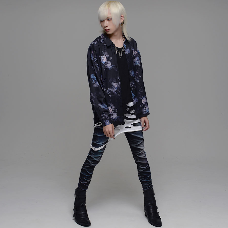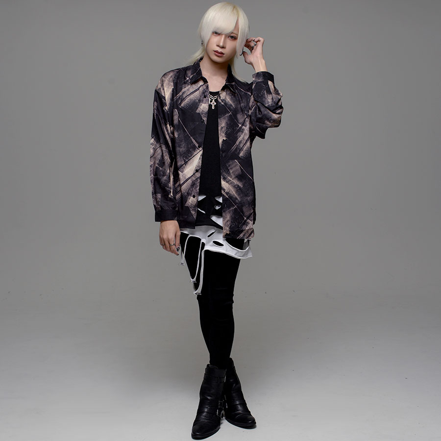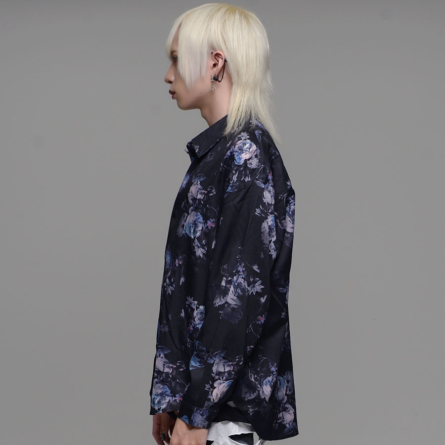 "CV select【シーブイセレクト】総柄プリントとろみシャツ/全17色"シャツ メンズ 総柄シャツ ヴィジュアル系 V系 ビッグ オーバーサイズ 花柄 大きいサイズ ファッション 服 M L 地雷系 モード系 韓国系 黒 ブラック サブカル系 きれいめ 長袖 大人 春 夏 秋 冬 送料無料