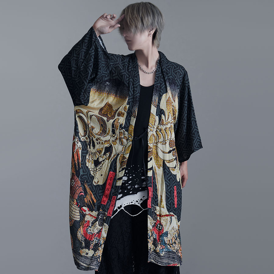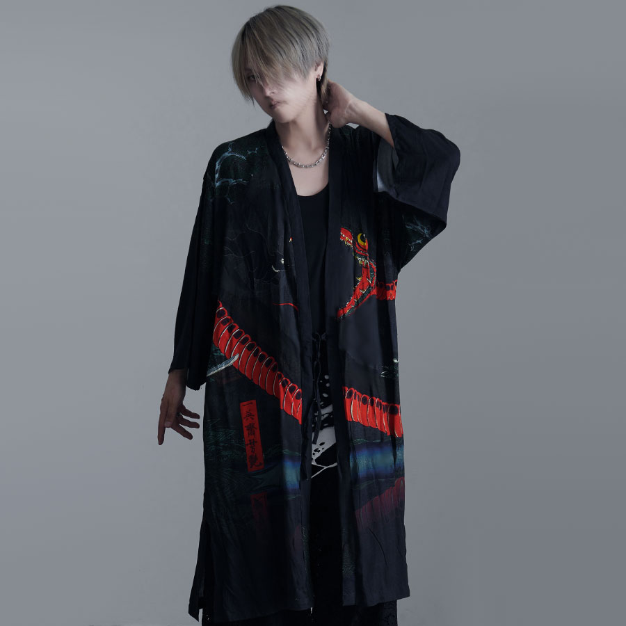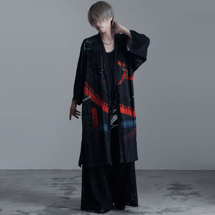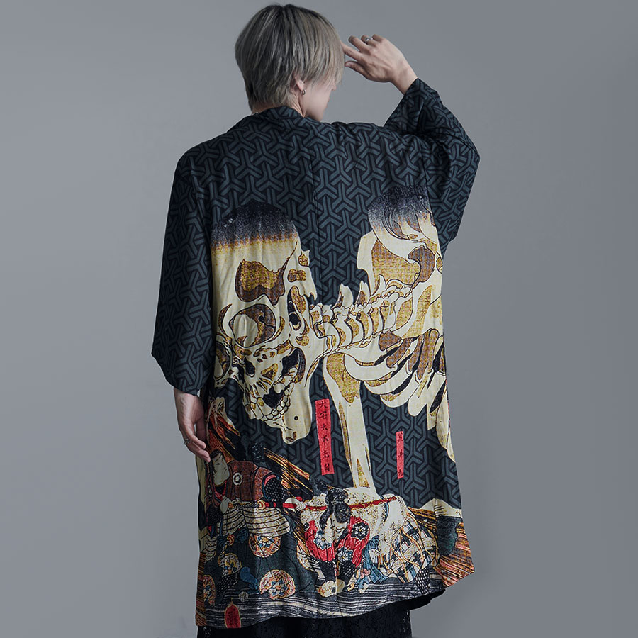 "CV select【シーブイセレクト】UVカット加工浮世絵羽織りカーディガン/全2色"カーディガン ガウン ロング丈 メンズ V系 ファッション 服 ヴィジュアル系 モード系 羽織 黒 ブラック スカル ヘビ UVカット UV対策 紫外線対策 日焼け防止 服 レディース 倭物やカヤ