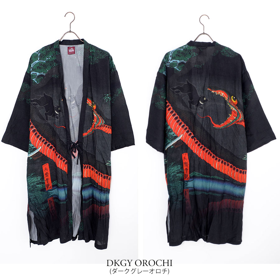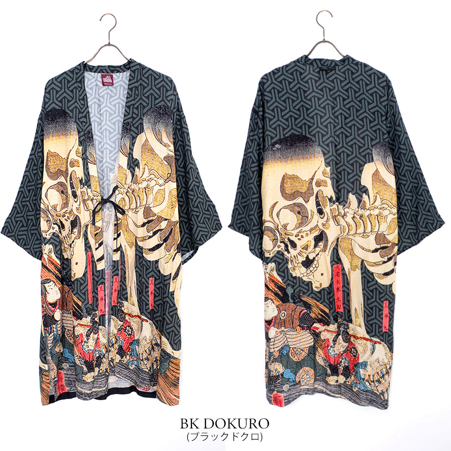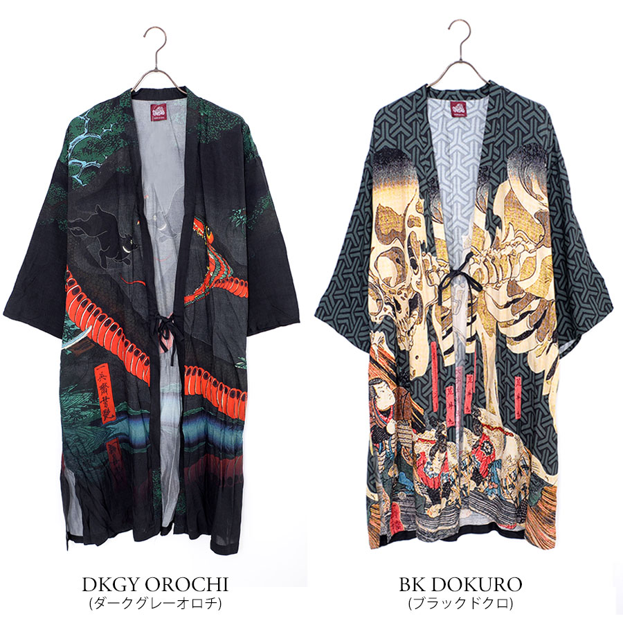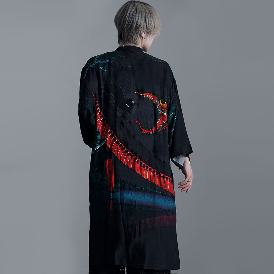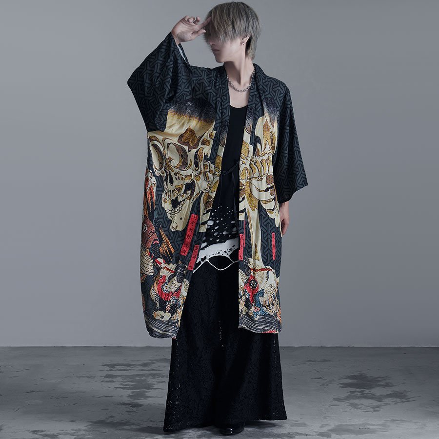 "CV select【シーブイセレクト】UVカット加工浮世絵羽織りカーディガン/全2色"カーディガン ガウン ロング丈 メンズ V系 ファッション 服 ヴィジュアル系 モード系 羽織 黒 ブラック スカル ヘビ UVカット UV対策 紫外線対策 日焼け防止 服 レディース 倭物やカヤ