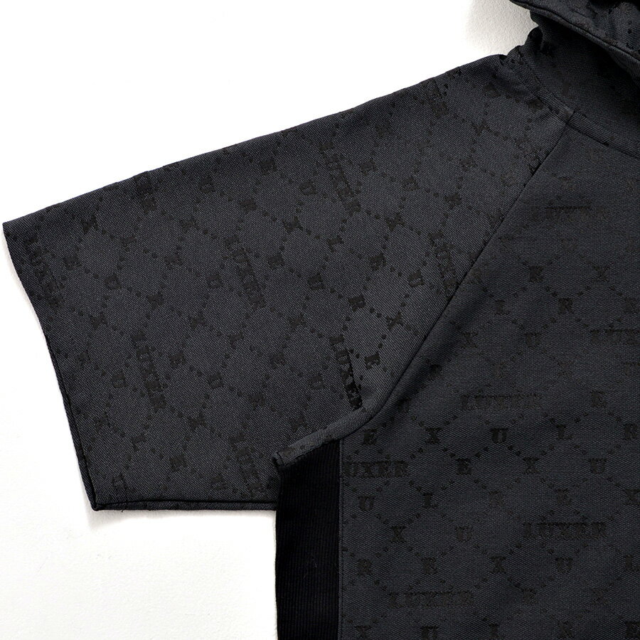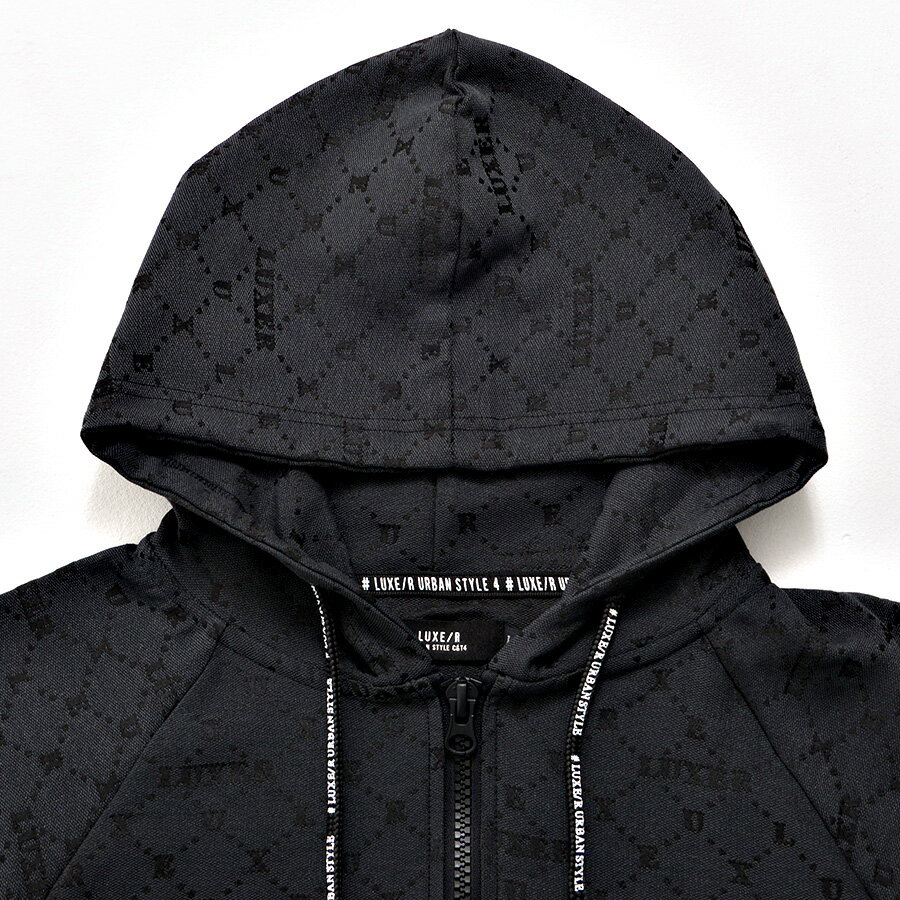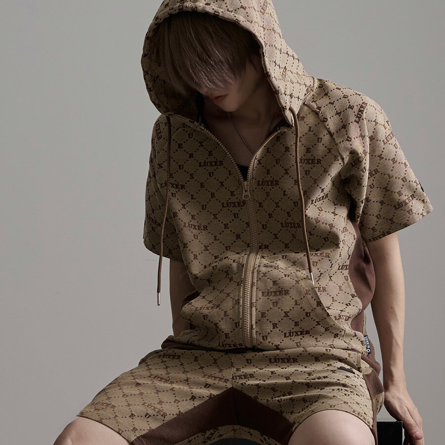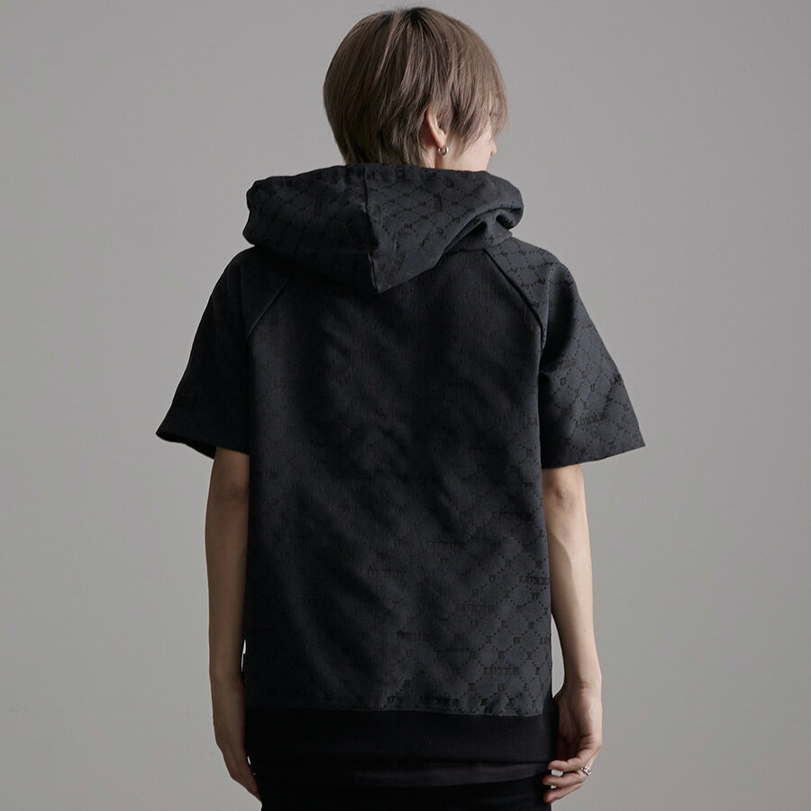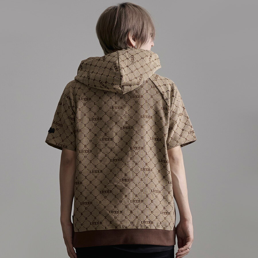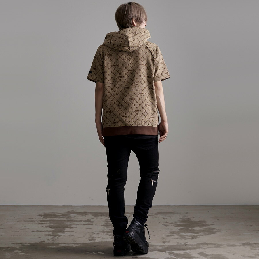 "CV Select【シーブイセレクト】ジャガードロゴ総柄半袖ジップパーカー/全2色"パーカー セットアップ可能 ホスト系 ジップアップ ジップパーカー 地雷系 ジャガード Y2K きれいめ 大人 V系 メンズ 黒 ブラック ベージュ 総柄 ファッション 服 半袖 ストリート系