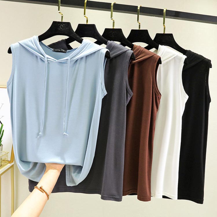 ノースリーブパーカー フード付き 夏 パーカー tシャツ フード付きtシャツ 袖なし カットソー カジュアル レディース おしゃれ プルオーバー ベスト ひんやり 薄手 インナー ノースリーブtシャツ シンプル 無地 春夏 大きサイズ レイヤード 送料無料