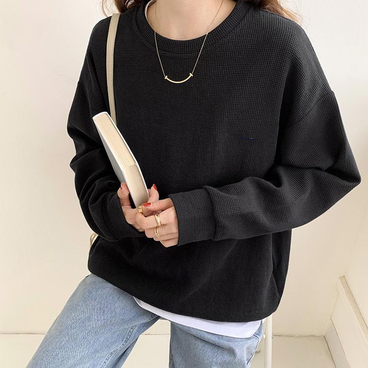 カットソー 黒 ブラック ロンT プルオーバー 体型カバー ワッフル レディース 春 トップス 韓国 大きいサイズ ドロップショルダー 長袖 白 グレー 秋 ホワイト ワッフル シンプル カジュアル トレーナー Tシャツ おしゃれ