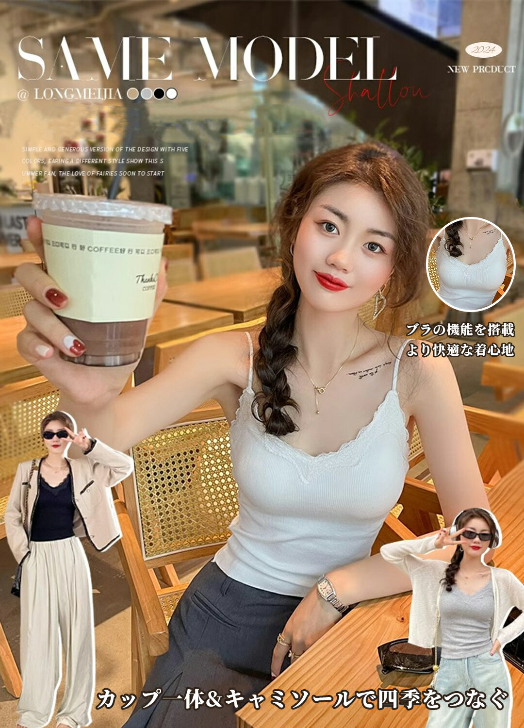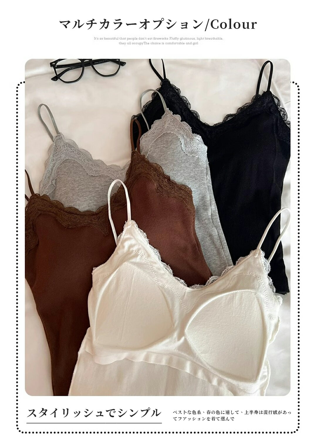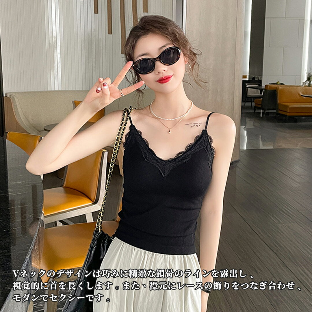 P3倍&クーポンで1699円 2024登場 キャミソール レース カップ付き ワイヤーなし タンクトップ セクシー フリーサイズ 冷え取り 汗取り 速乾 通気快適 肌に優しい 伸縮性あり チラ見え防止 ブラトップ インナー レディース リブ ルームウェア キャミブラ ブラキャミ 部屋着