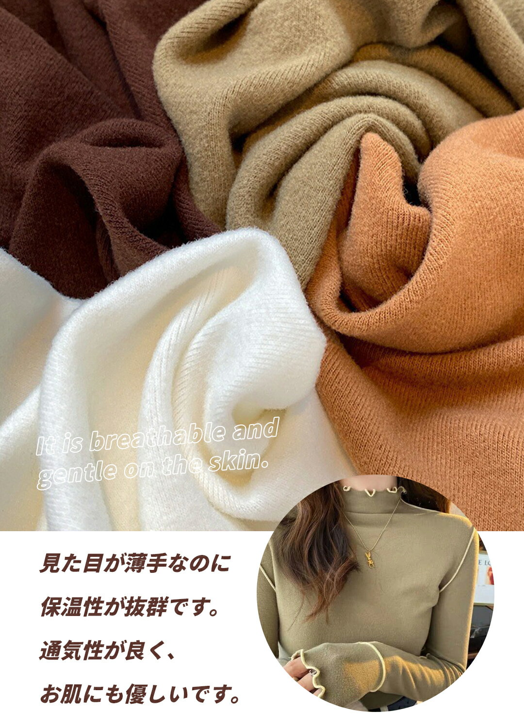 特価延期!1枚1,199円★3枚購入&クーポン有 トップス インナー レディース 長袖 カットソー ハイネック 無地 冬 あったかい 重ね着 タートルネック ラウンドネック 暖かい 保温 肌着 ハイネックカットソー ハイネックカットソー 秋冬 ブラック ホワイト シンプル 送料無料